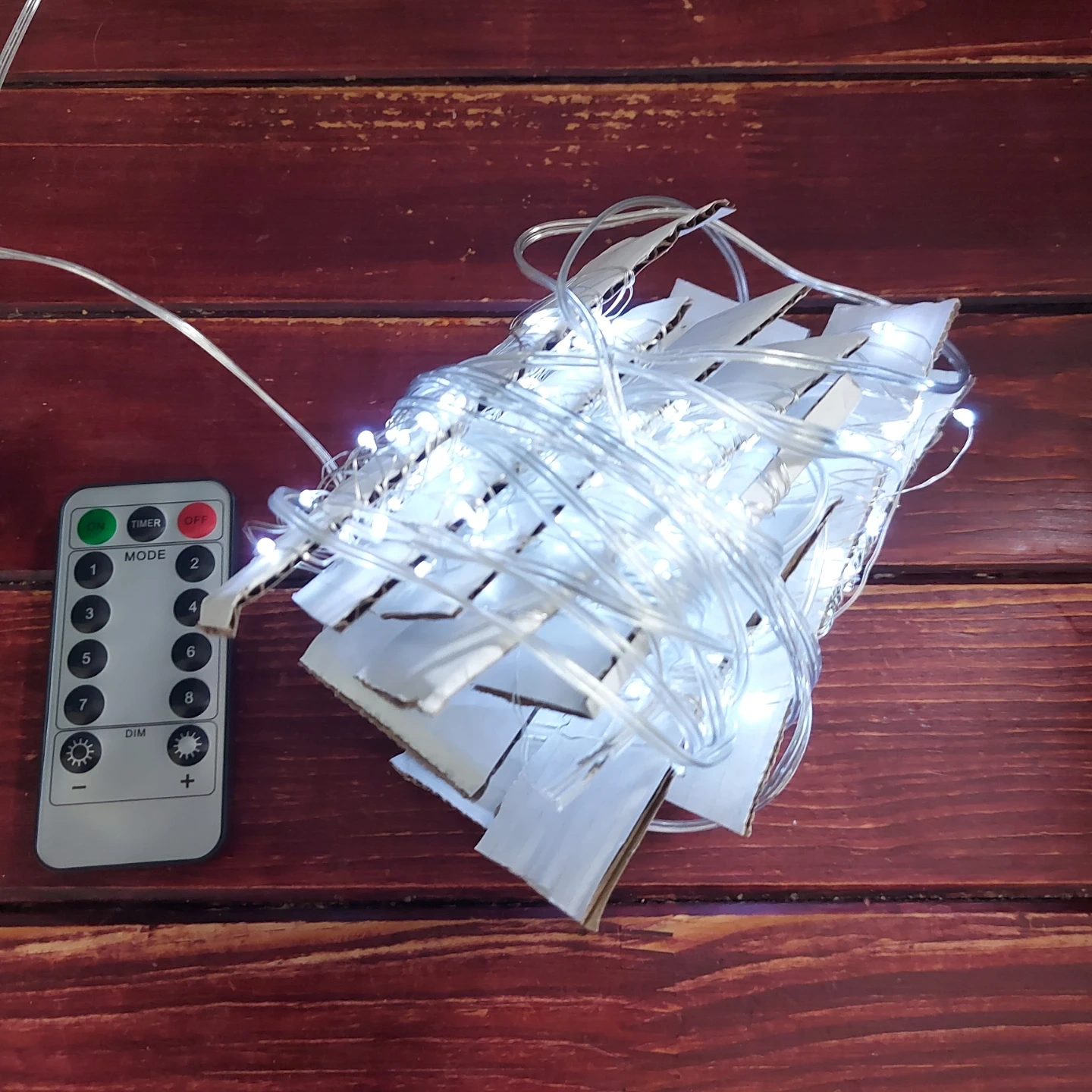 White string lights powered by USB with a remote control.