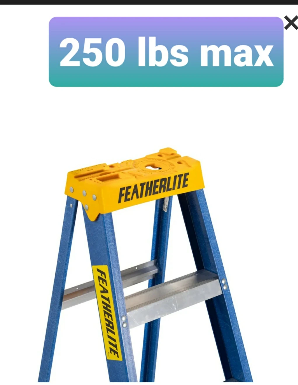 Brand new Featherlite 8ft A-frame ladder. It's a grade 1 ladder with a 250 lbs max weight capacity. Great for home improvement projects or professional jobs!