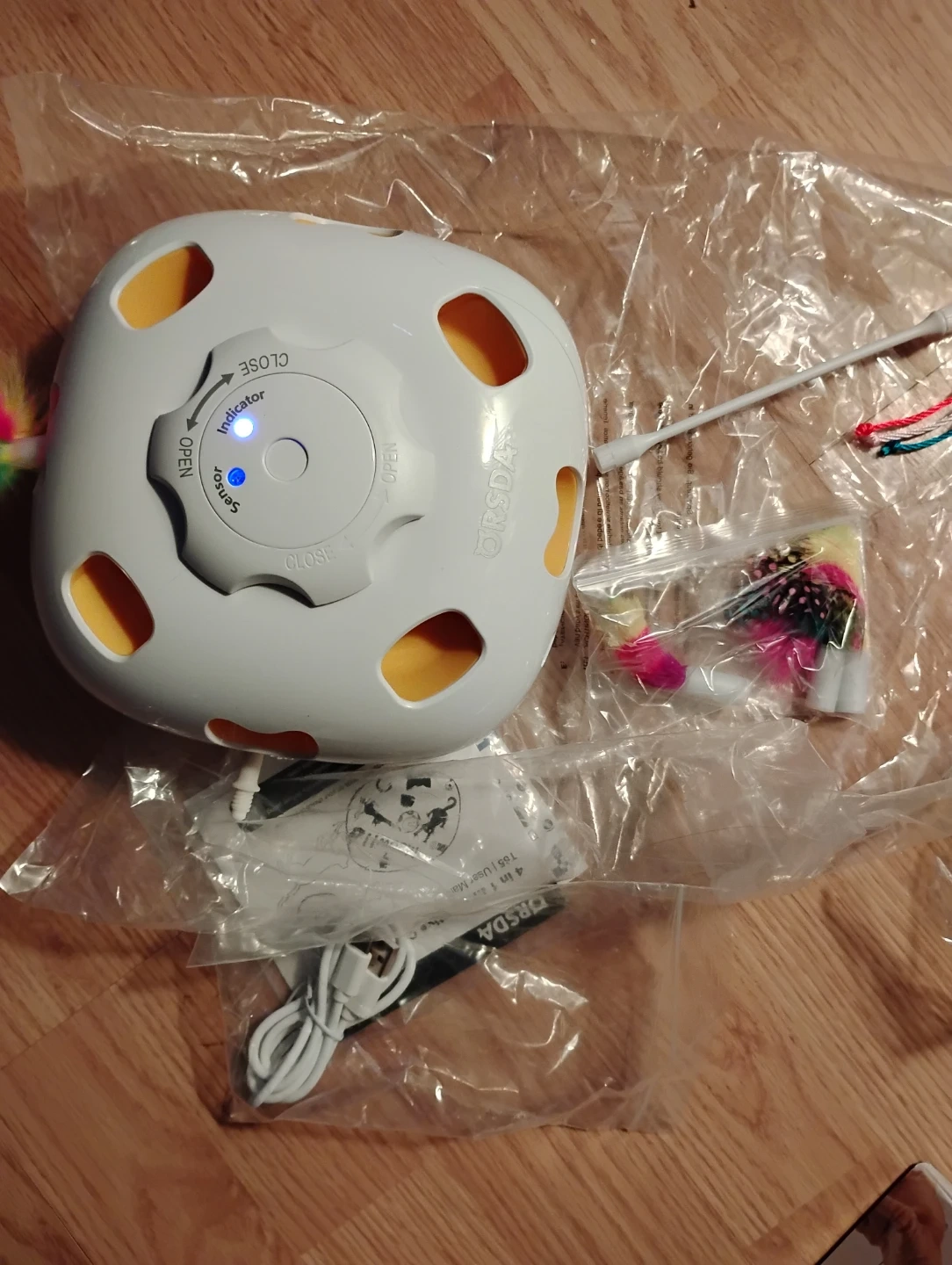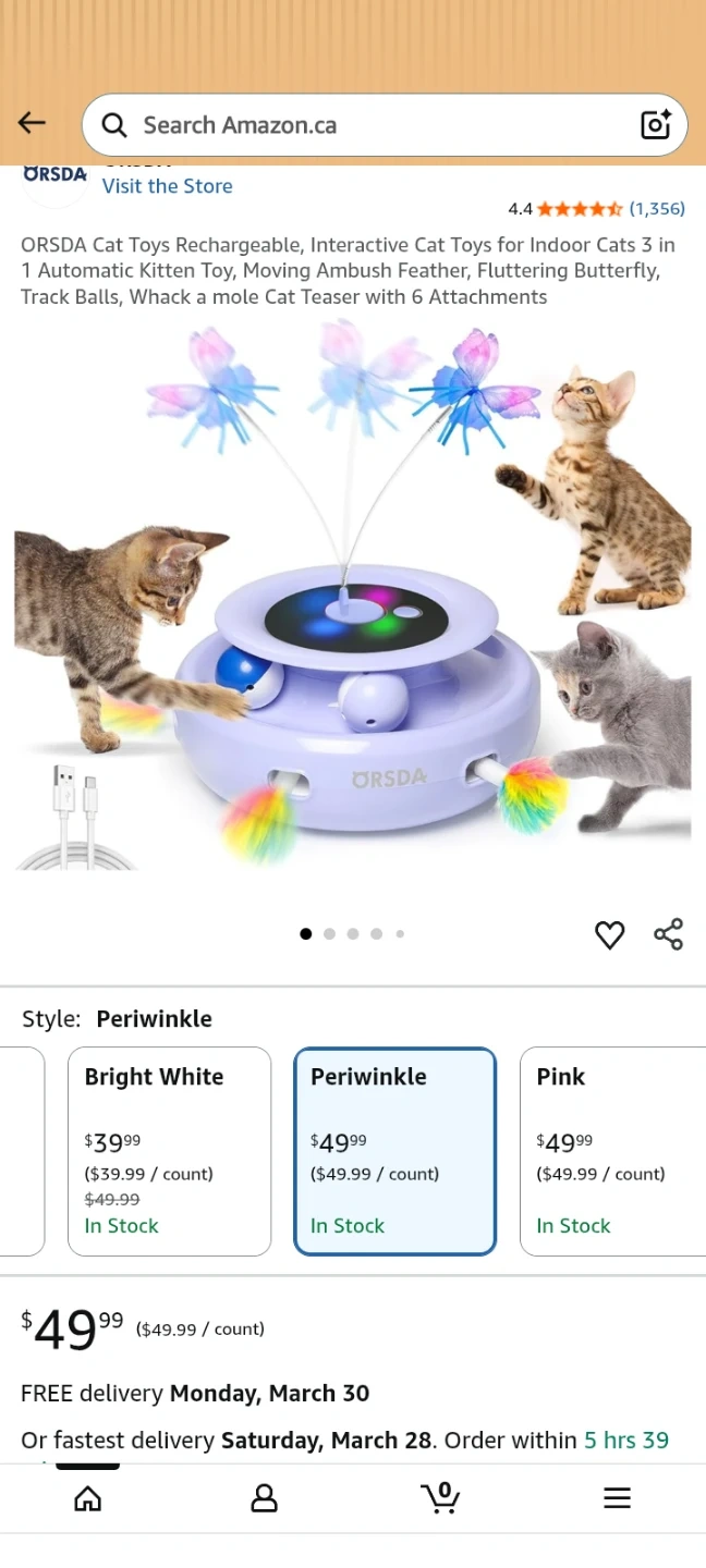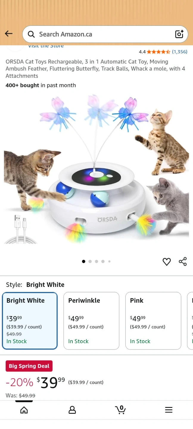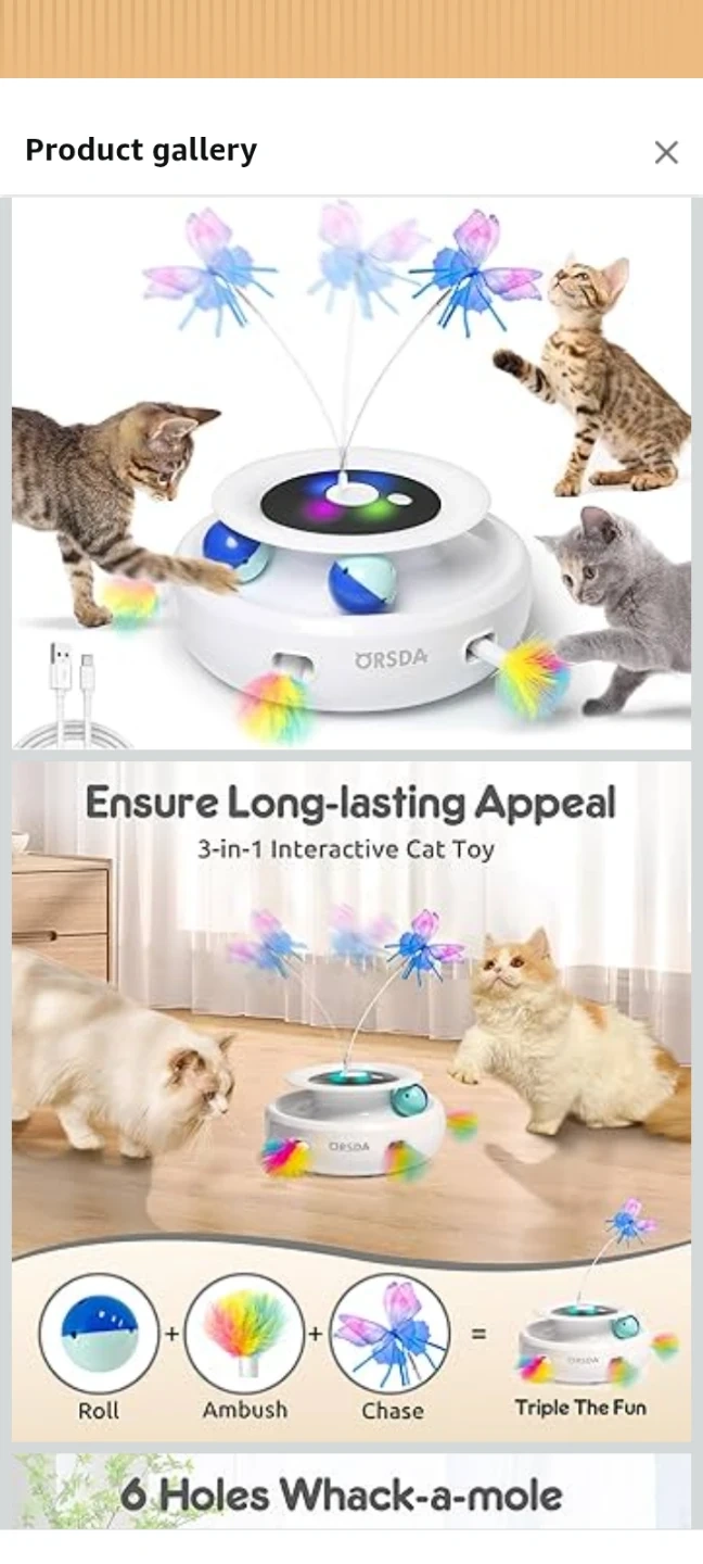 ORSDA 3-in-1 interactive cat toy keeps your feline friends entertained! It features a rechargeable design with multiple modes like Roll, Ambush, and Chase. Includes fluttering butterflies, track balls, and a whack-a-mole function with 6 holes. Smooth ABS material protects cat's paws.