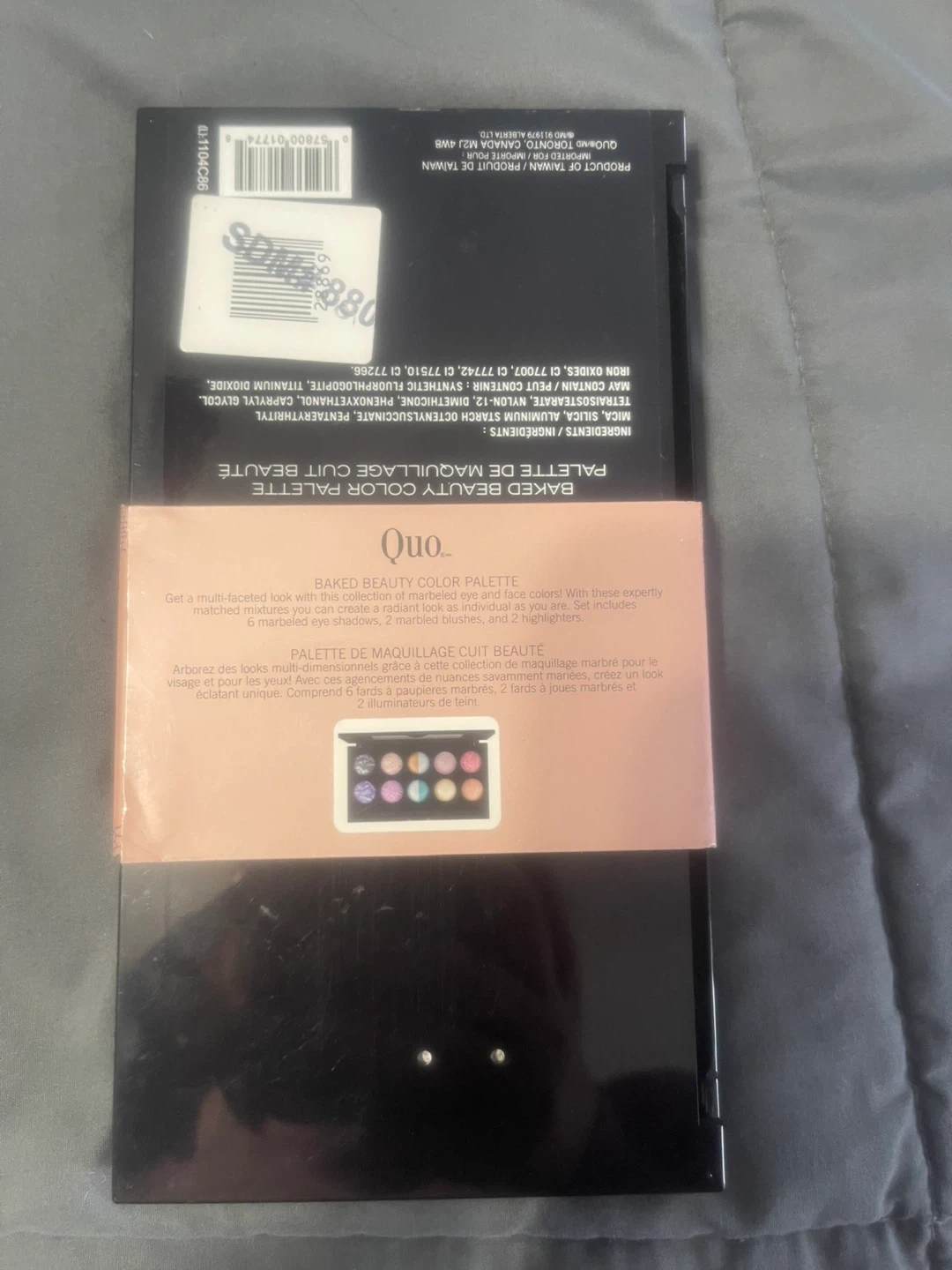 This baked beauty color palette from Quo features expertly matched mixtures to create multi-faceted looks. It includes 6 marbled eye shadows, 2 marbled blushes, and 2 highlighters. Individual pans are 2.3g each.