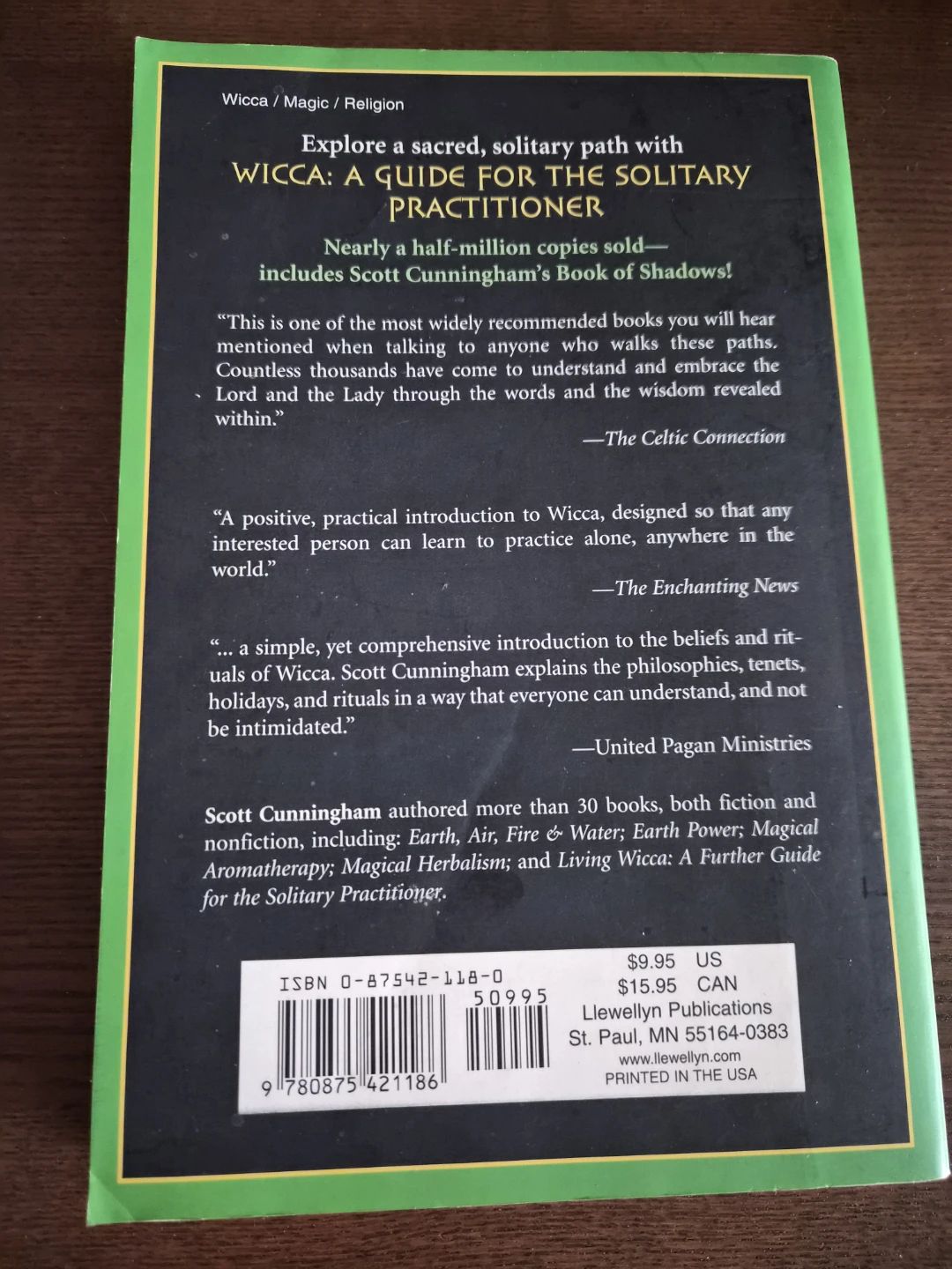 Selling "Wicca: A Guide for the Solitary Practitioner" by Scott Cunningham! This book explores a sacred path for those interested in Wicca. Authored by Scott Cunningham, who has written over 30 books, including "Earth, Air, Fire & Water," "Magical Aromatherapy," and "Living Wicca"