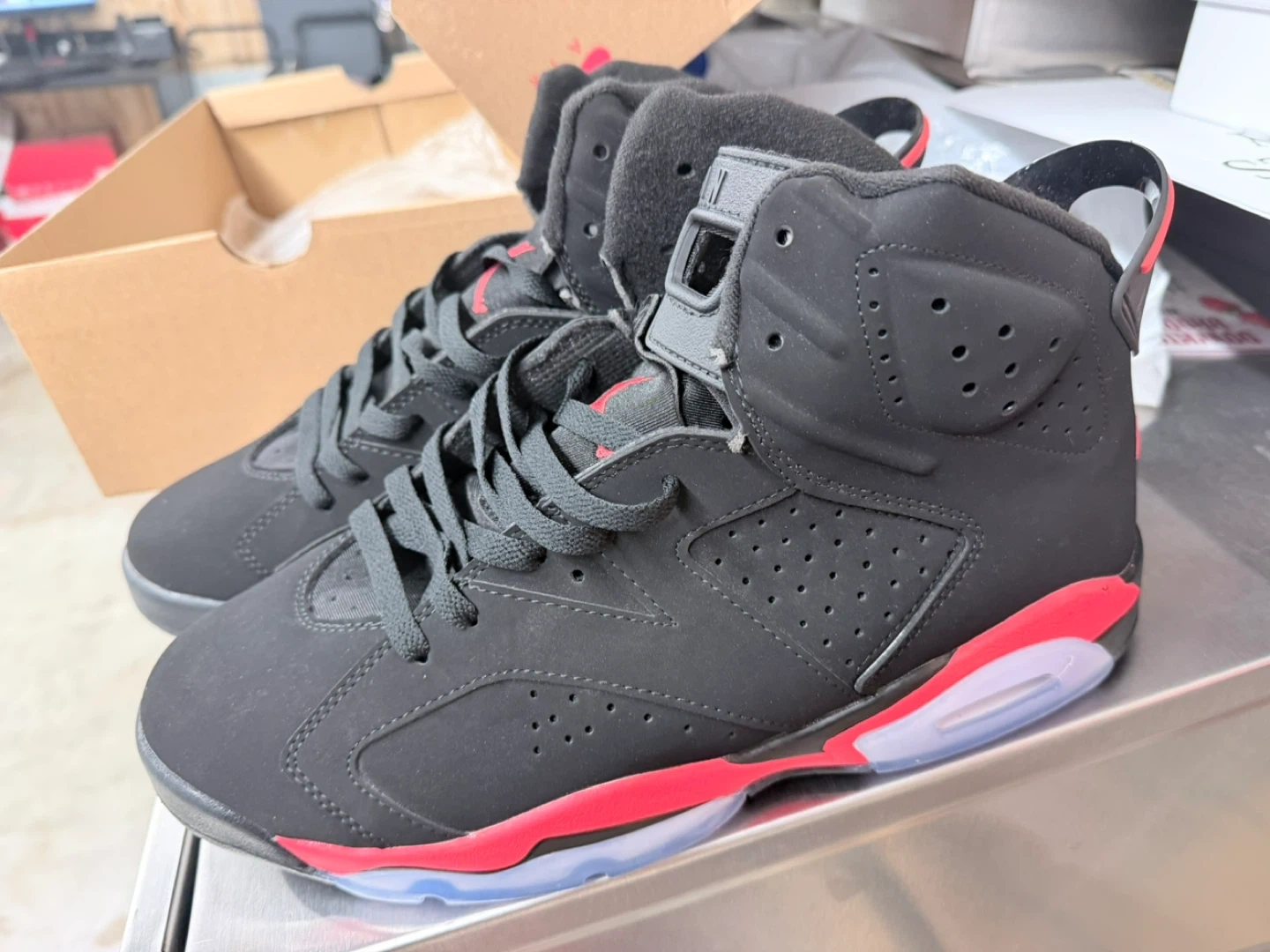 Buy & SellNike Air Jordan 6 Retro SneakersNike Air Jordan 6 Retro Sneakers$99Black and red Nike Air Jordan 6 Retro sneakers. Includes original box. Size is men's 13ConditionNewSize13BrandNikeWHERE TO MEETCheck LocationView MapSELLERAnthonyBedford-Stuyvesant262 reviews0 chats·0 favorites·48 viewsSEND CHAT TO SELLERHi Anthony! I’m interested in your listing.Hi Anthony! I’m interested in your listing.Get the Karrot app to chatSign In to chat