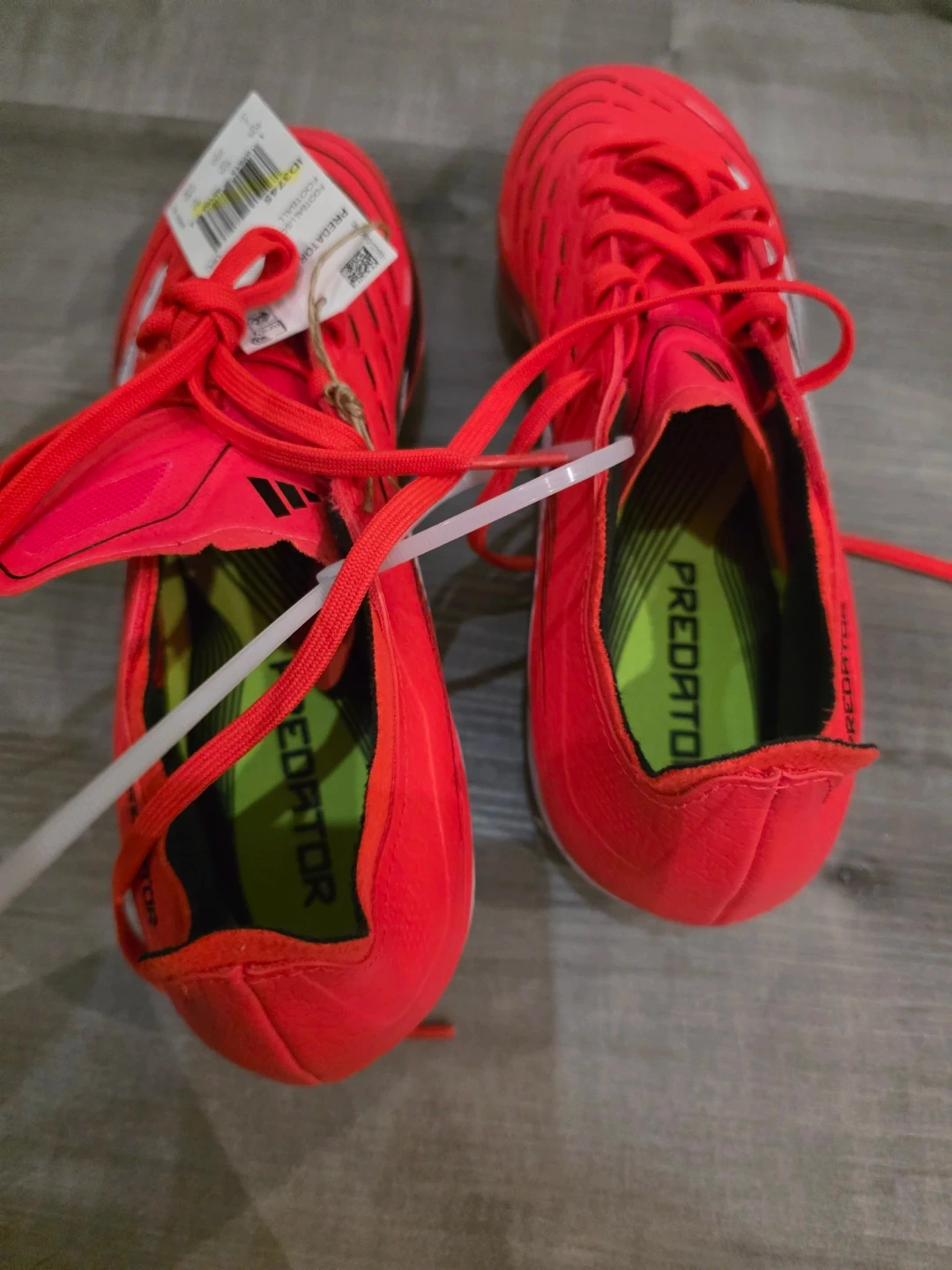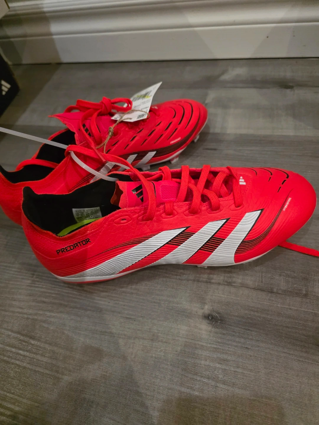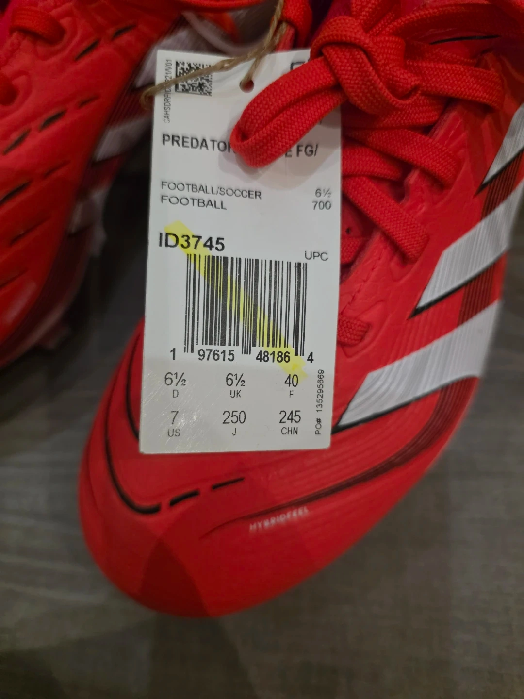 Brand new red Adidas Predator football/soccer cleats. These cleats are a women size 7 US (40 EU). They're designed for performance on the field. Great for soccer players of all levels!