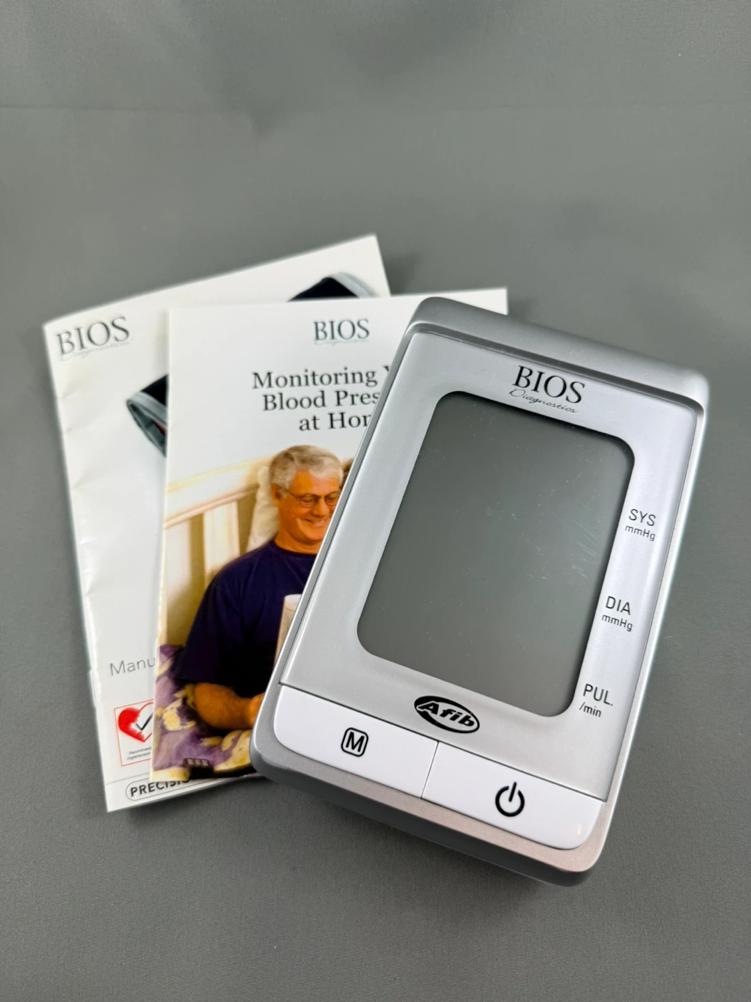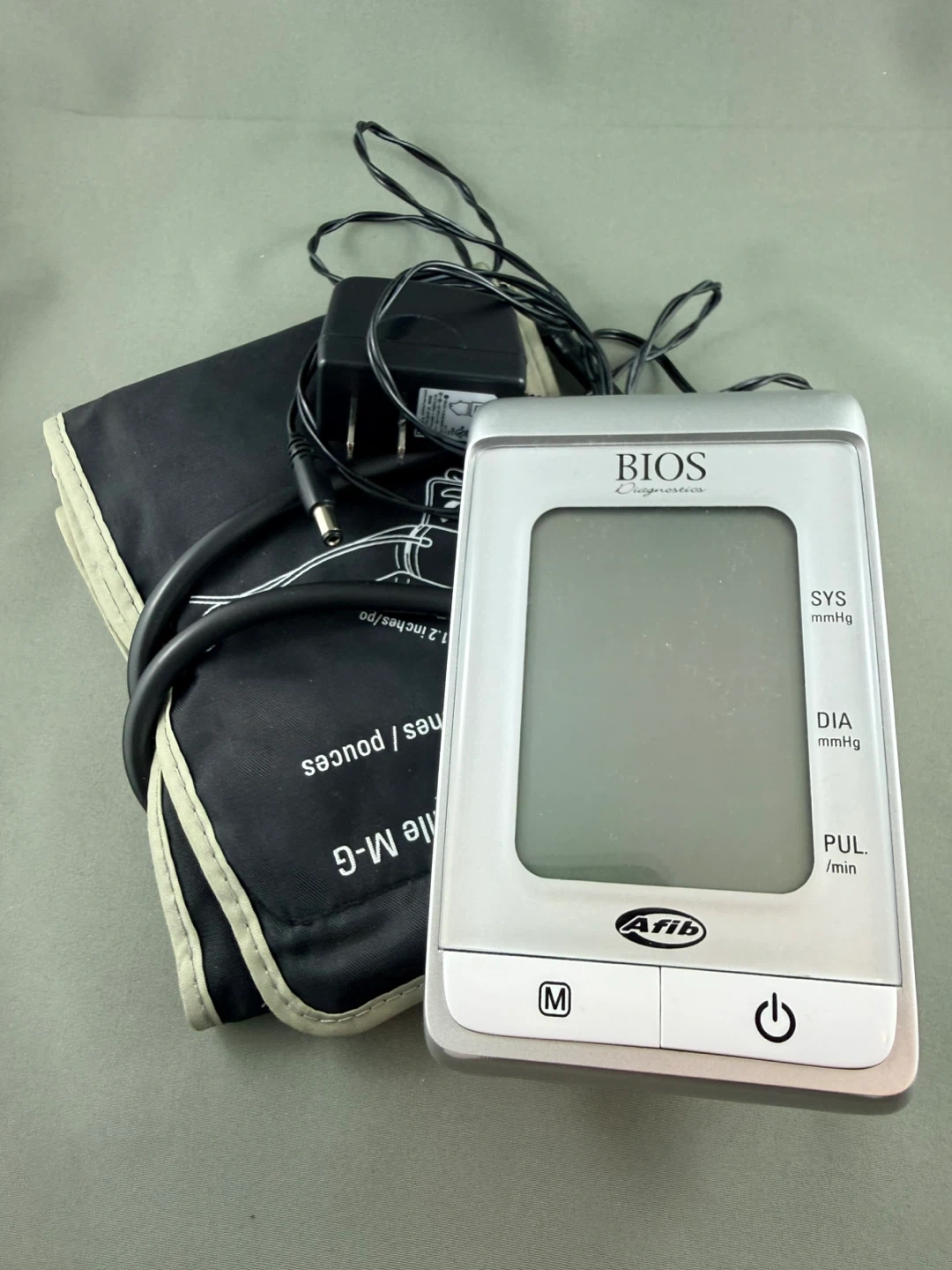This BIOS Diagnostics blood pressure monitor comes with a cuff and AC adapter. It also includes the original manual and a carrying case. Monitor your blood pressure at home with this convenient device.