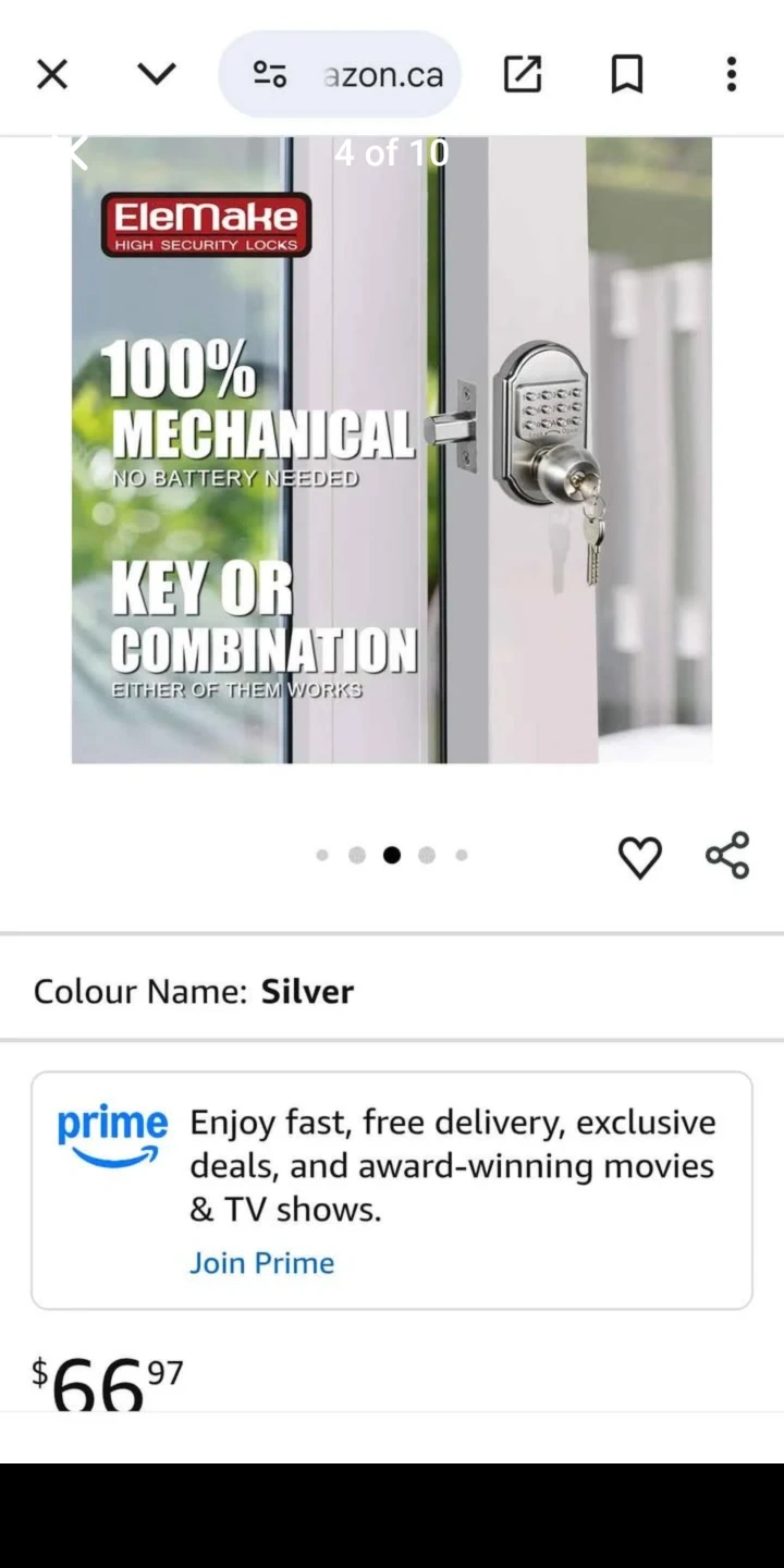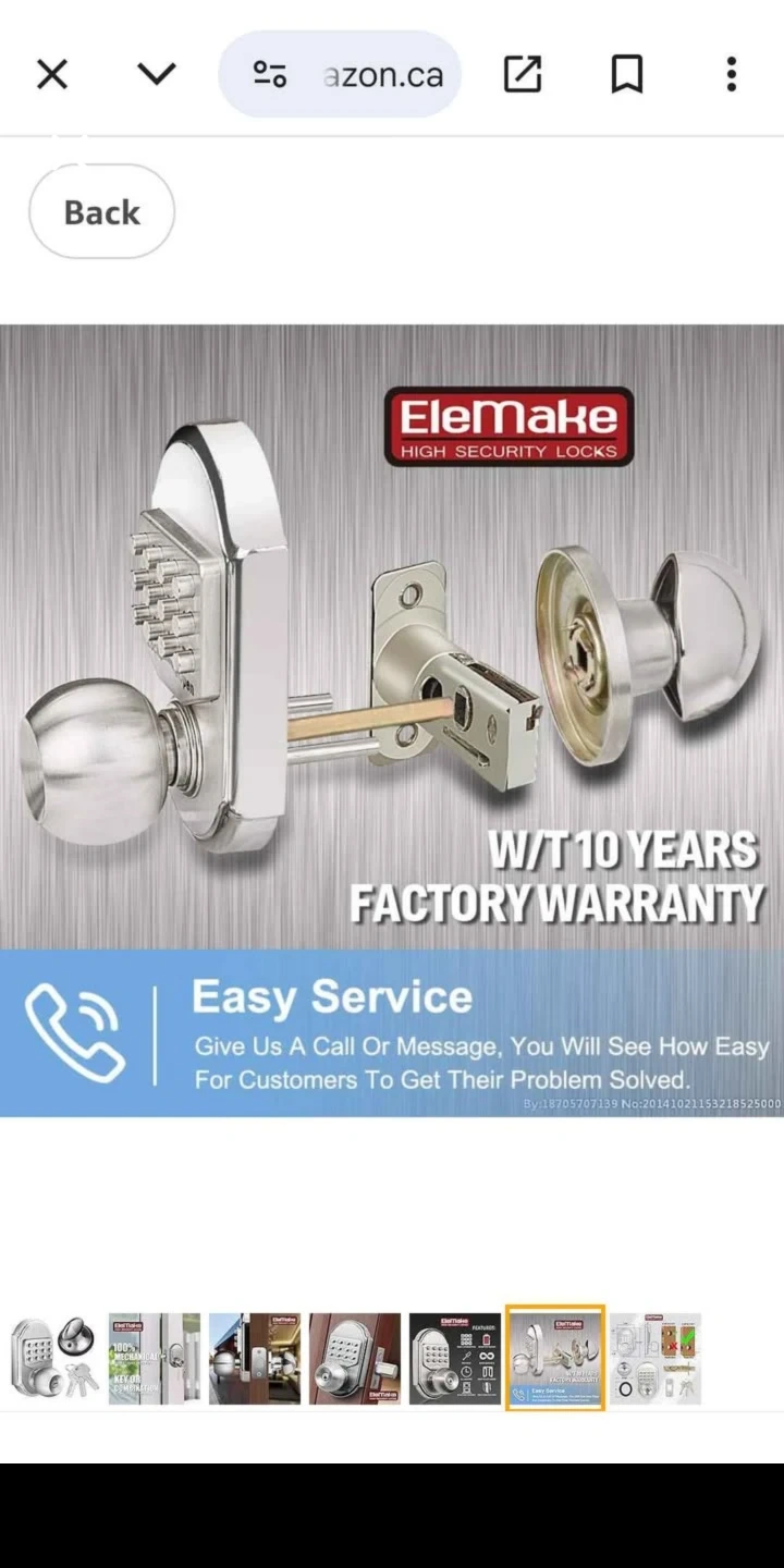 This is an Elemake high security mechanical door lock. It features a 100% mechanical design with no battery needed. You can use either a key or a combination to operate it. This lock is suitable for doors requiring high security. Cash only