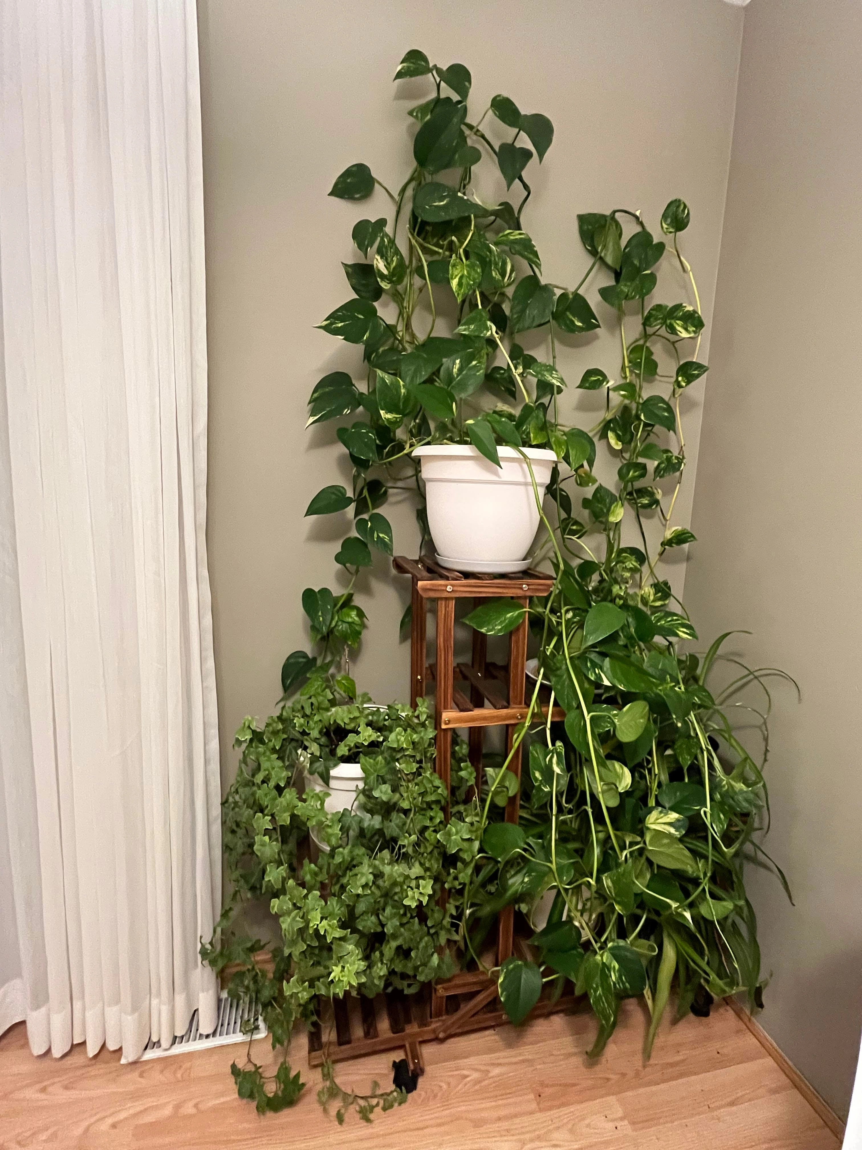 Plant Stand + Golden Pothos + English Ivy + FREE Spider Plants