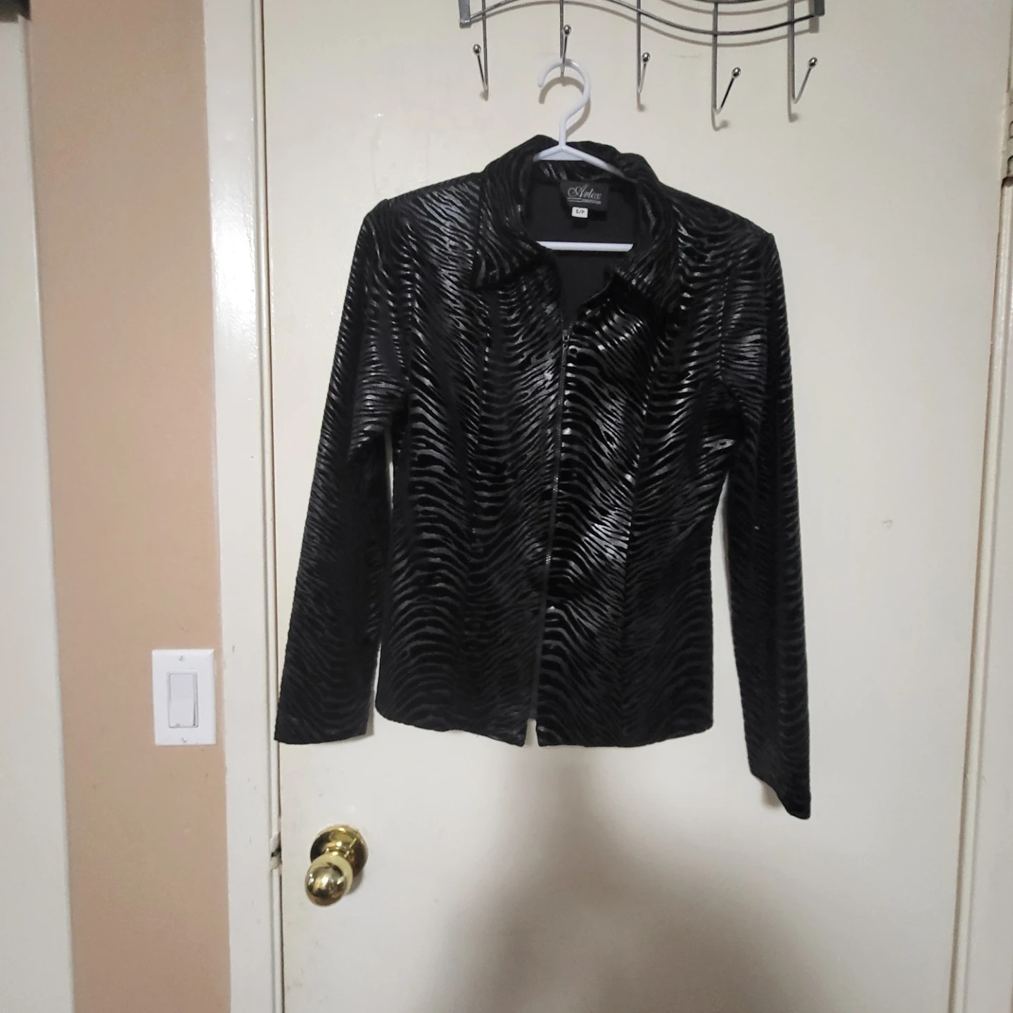 Selling a black Artex Collection blazer in size S/P. It features a unique textured pattern. Perfect for adding a touch of style to any outfit!