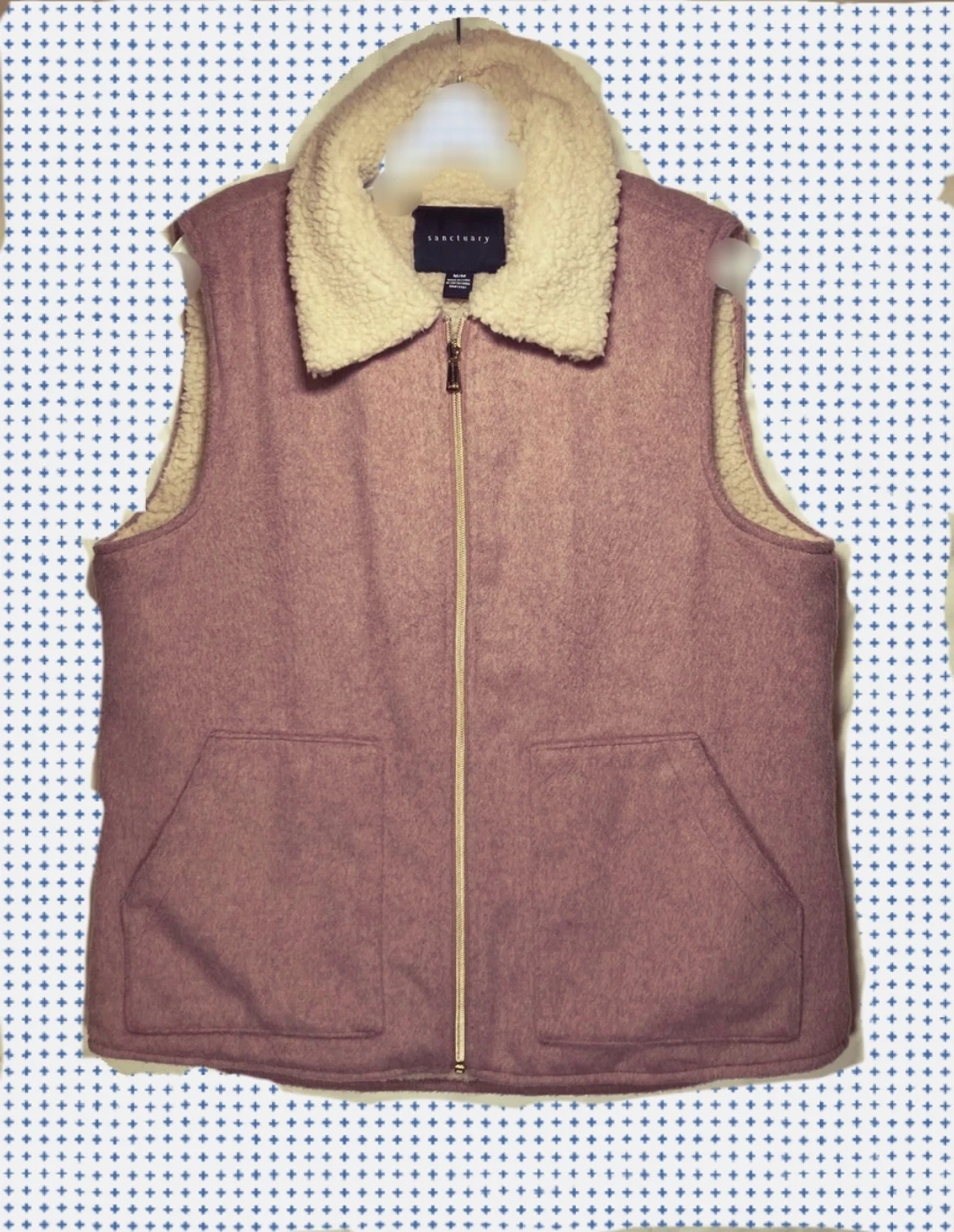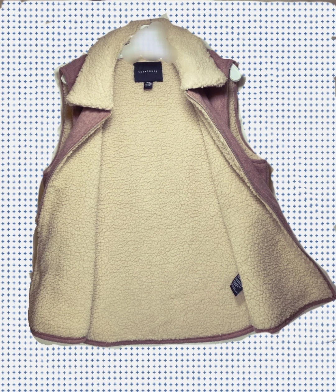 Cozy up in this Sanctuary sherpa-lined vest in Mauve color! It's a size Large and features a full zip closure and two front pockets. Perfect for layering on chilly days!