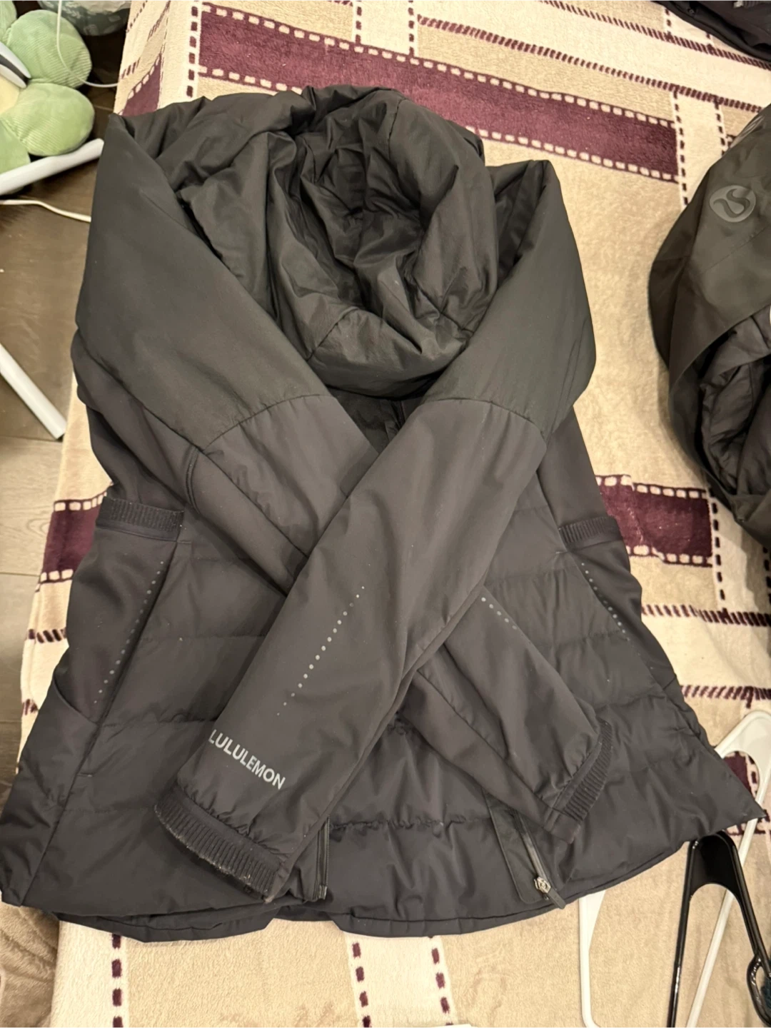 Selling a Lululemon black puffer jacket! It's in great condition and ready for the colder weather. Perfect for staying warm and stylish!