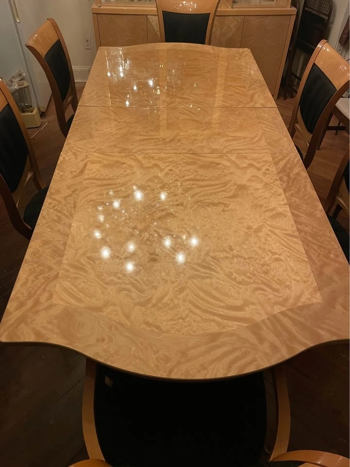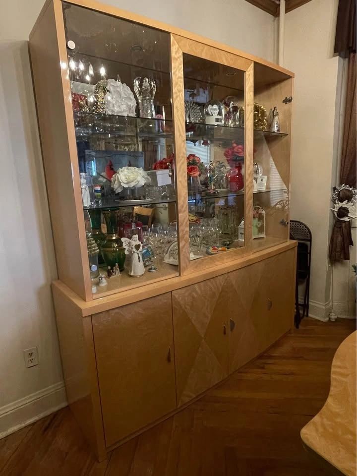 Set includes table (with leaf), six (6) chairs and a china closet.