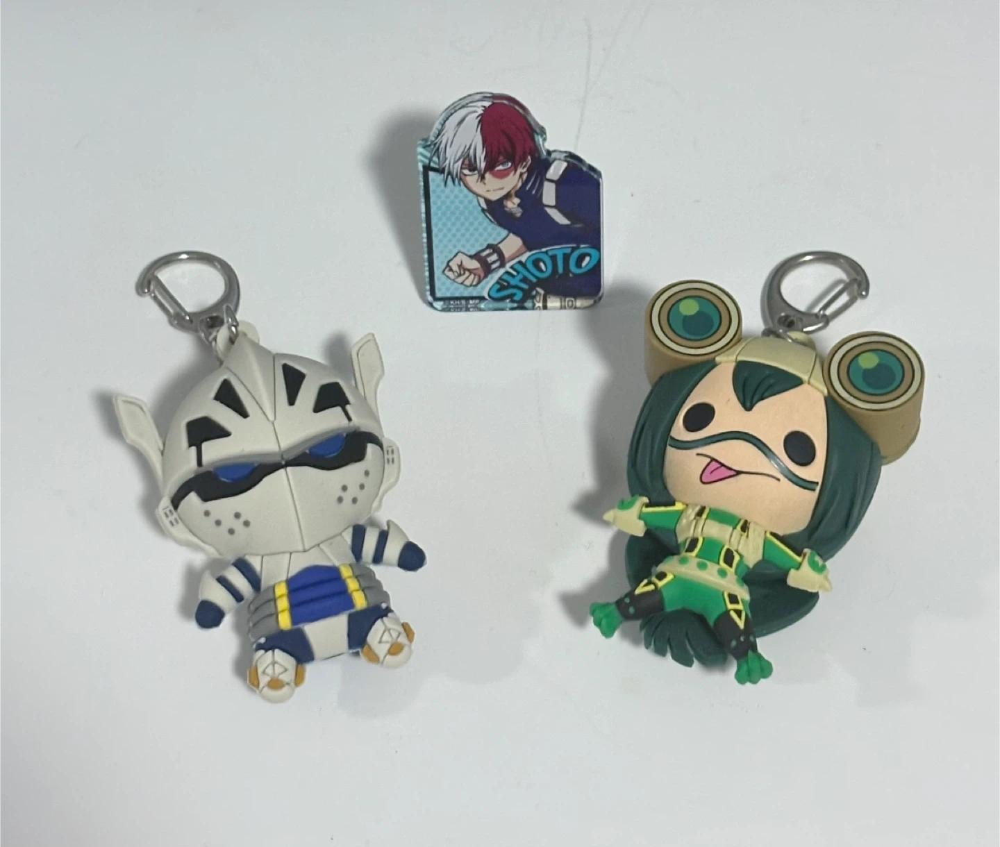 5Selling a set of My Hero Academia keychains and a stand! Includes Todoroki, Froppy, and lida. All items are in great condition. Perfect for any MHA fan or collector! Available meeting locations: - Finch - Thornhill Please message for any inquiry!