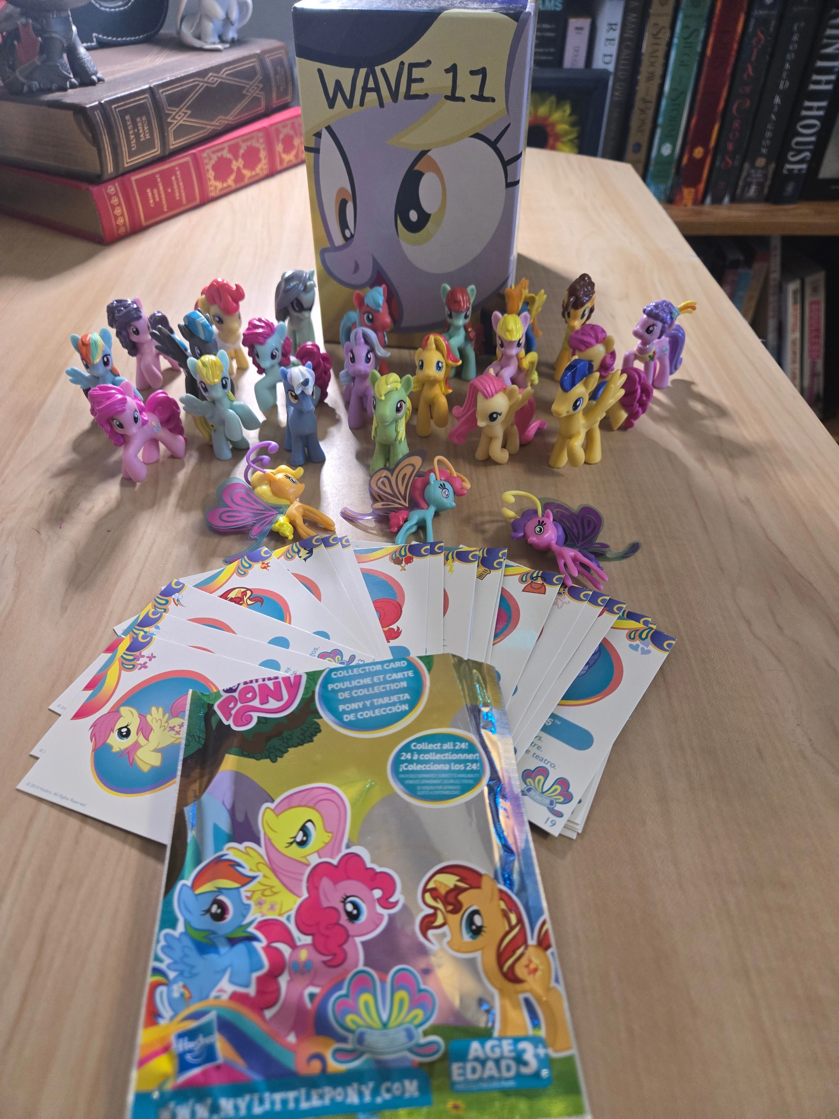 My Little Pony: Wave 11 Ponies with Cards (complete) The complete wave 11 MLP ponies with their collector cards (24 total). Each pony, depending on their position, are about 1-2 inches tall, so please consider this if you are planning on giving these to children. The cards correspond with the ponies are included, though due to the nature of blind bag packaging, the cards are in decent but not perfect condition. With this wave, I've included the MLP box with the wave written on it that I used to store them. Check out my profile for more MLP waves available for sale. I will not separate a single pony out of a wave due to the nature of the collection. I have no problem negotiating price if you want to buy more than one wave. Let me know if you would like more information or photos and I will get back to you as soon as I can.