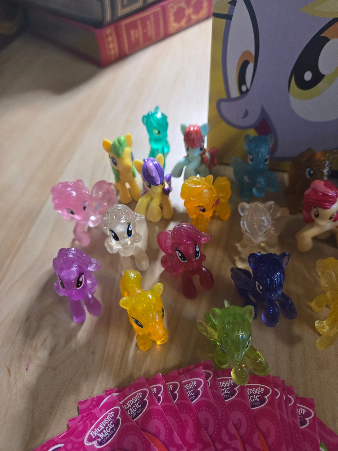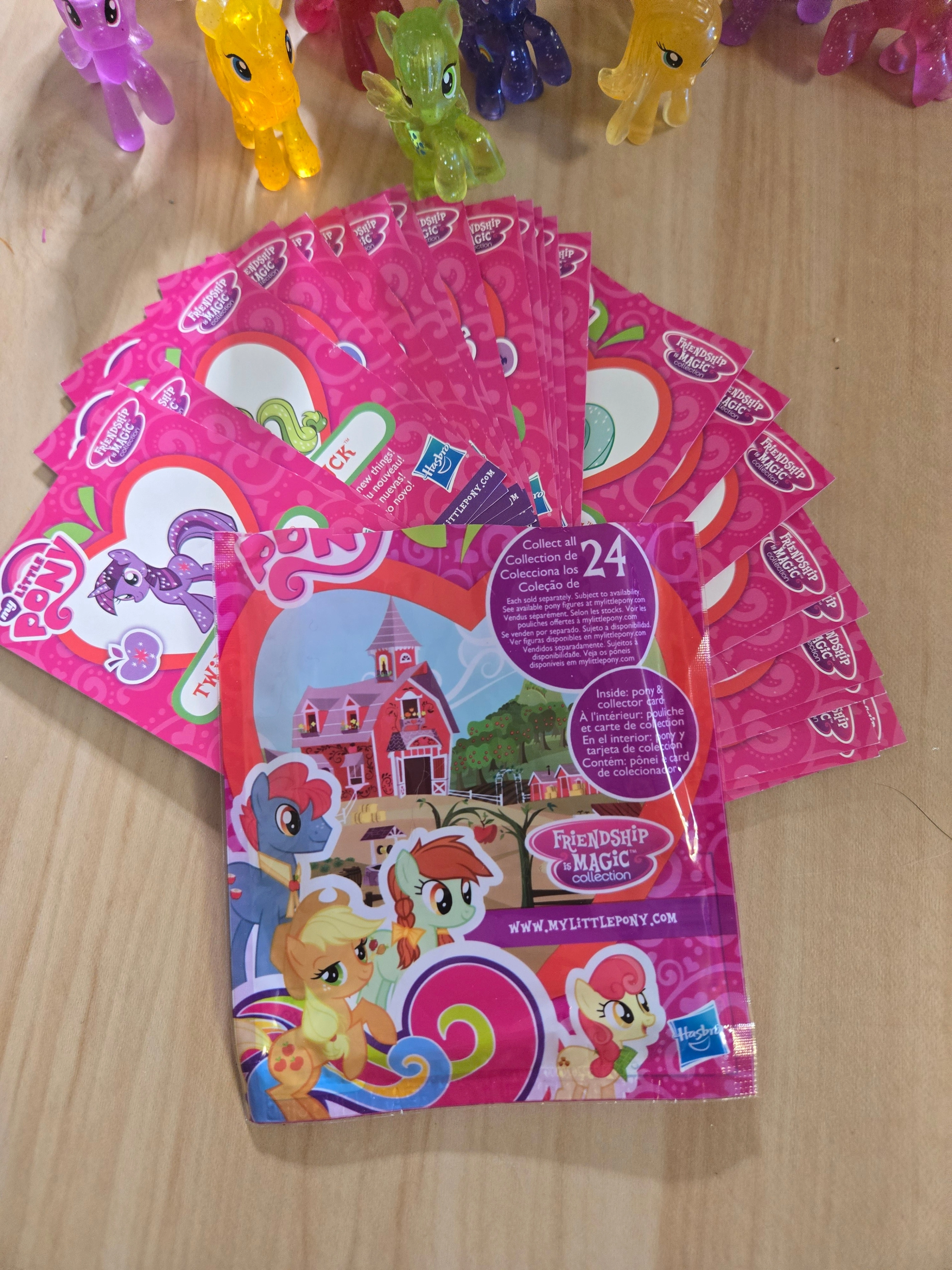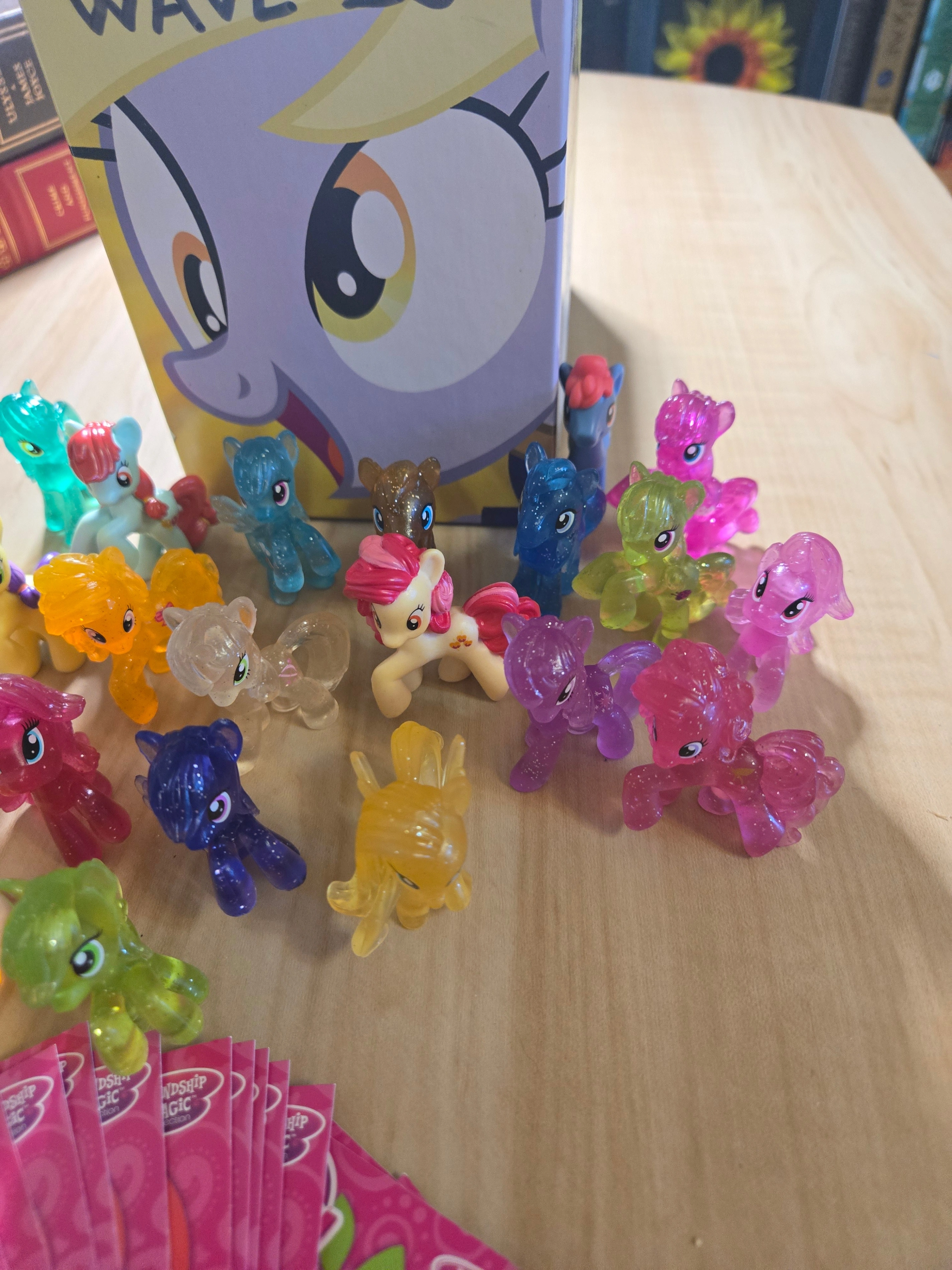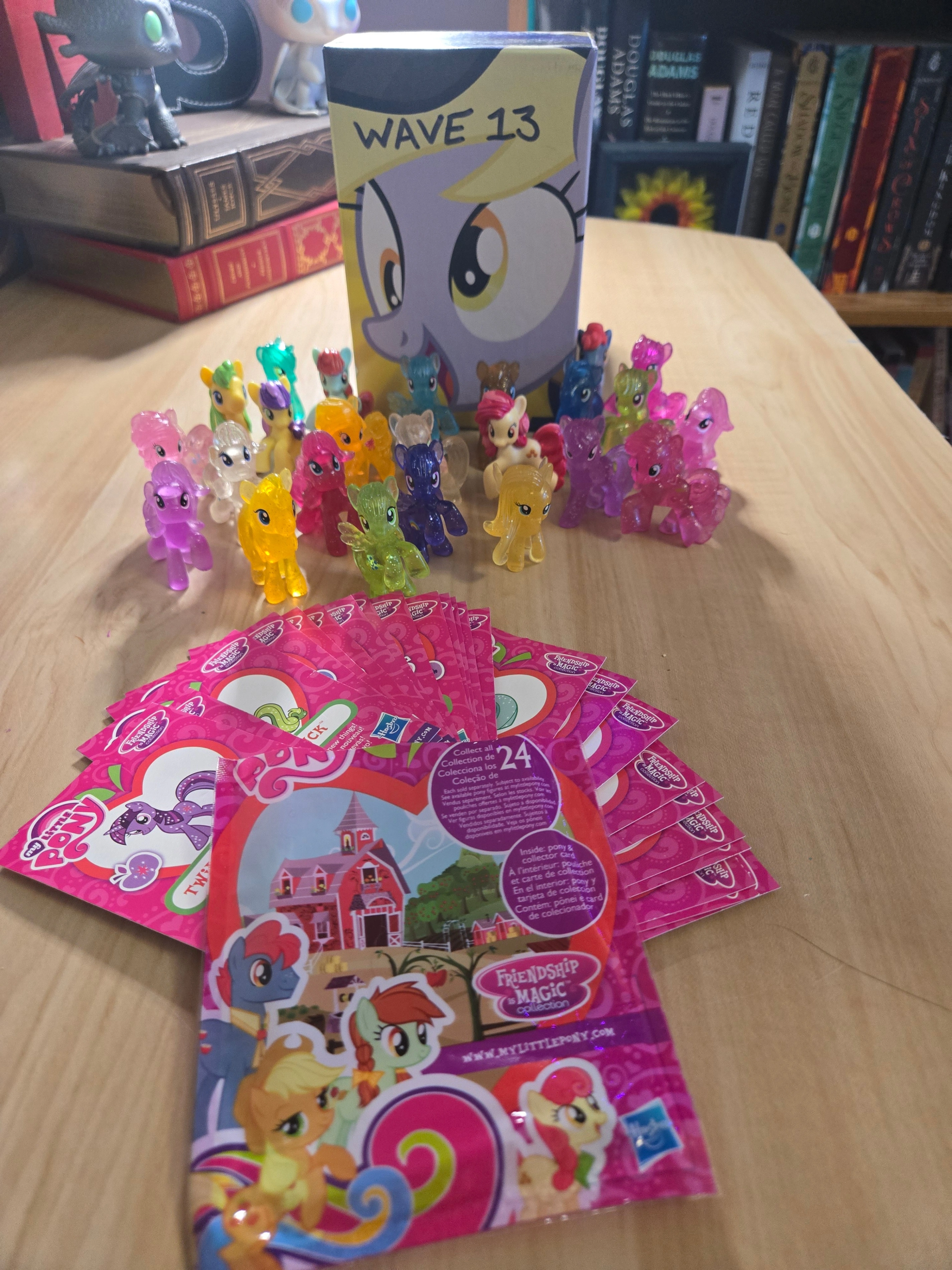 My Little Pony: Wave 13 Ponies with Cards (complete) The complete wave 13 MLP ponies with their collector cards (24 total). Each pony, depending on their position, are about 1-2 inches tall, so please consider this if you are planning on giving these to children. The cards correspond with the ponies are included, though due to the nature of blind bag packaging, the cards are in decent but not perfect condition. With this wave, I've included the MLP box with the wave written on it that I used to store them. Check out my profile for more MLP waves available for sale. I will not separate a single pony out of a wave due to the nature of the collection. I have no problem negotiating price if you want to buy more than one wave. Let me know if you would like more information or photos and I will get back to you as soon as I can.