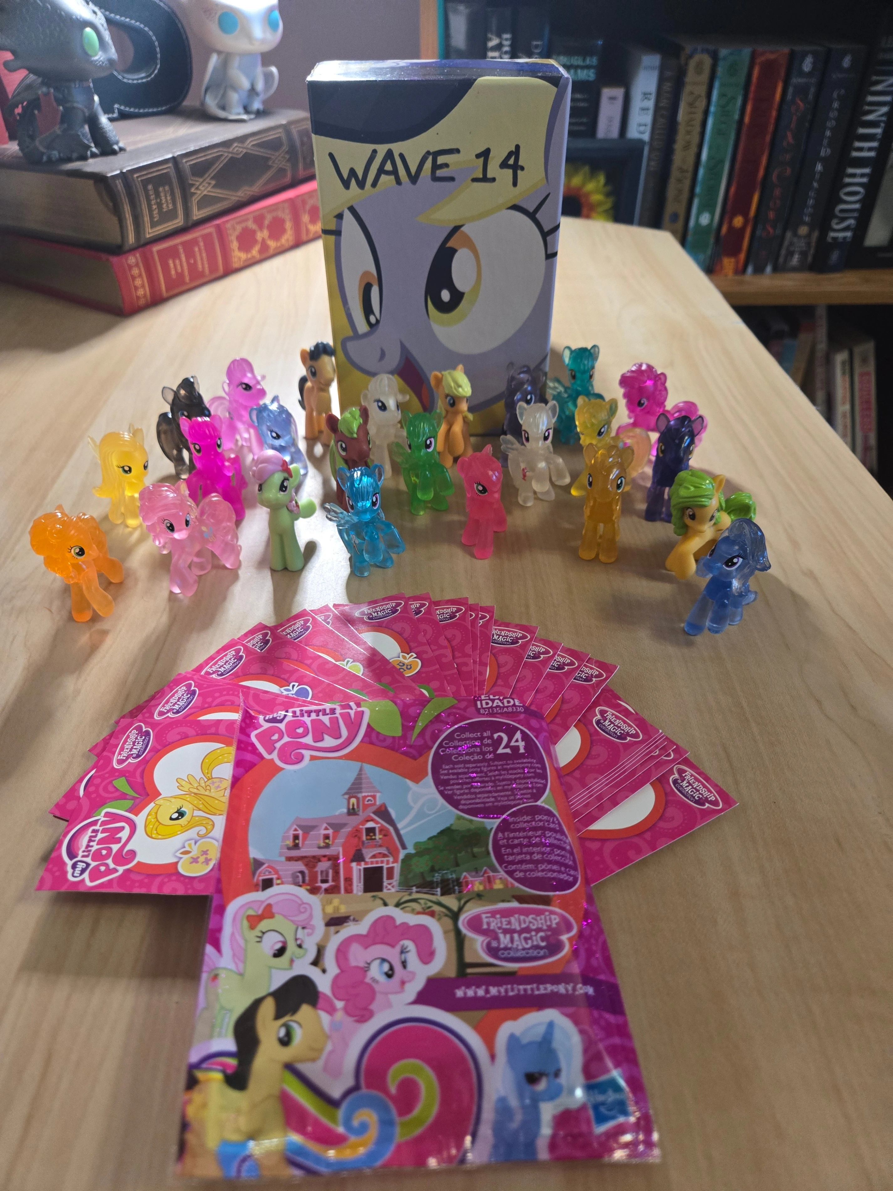 My Little Pony: Wave 14 Ponies with Cards (complete) The complete wave 14 MLP ponies with their collector cards (24 total). Each pony, depending on their position, are about 1-2 inches tall, so please consider this if you are planning on giving these to children. The cards correspond with the ponies are included, though due to the nature of blind bag packaging, the cards are in decent but not perfect condition. With this wave, I've included the MLP box with the wave written on it that I used to store them. Check out my profile for more MLP waves available for sale. I will not separate a single pony out of a wave due to the nature of the collection. I have no problem negotiating price if you want to buy more than one wave. Let me know if you would like more information or photos and I will get back to you as soon as I can.