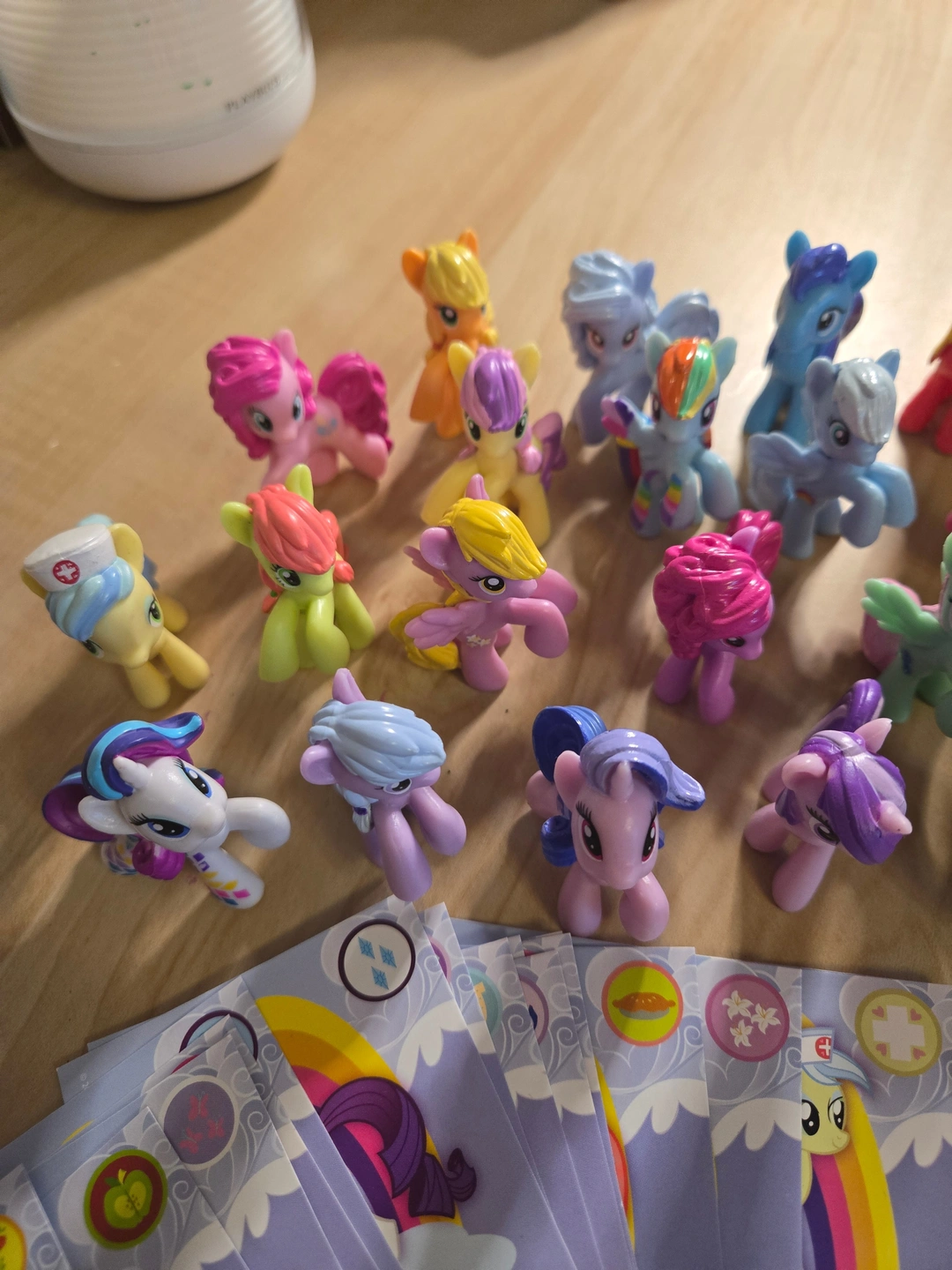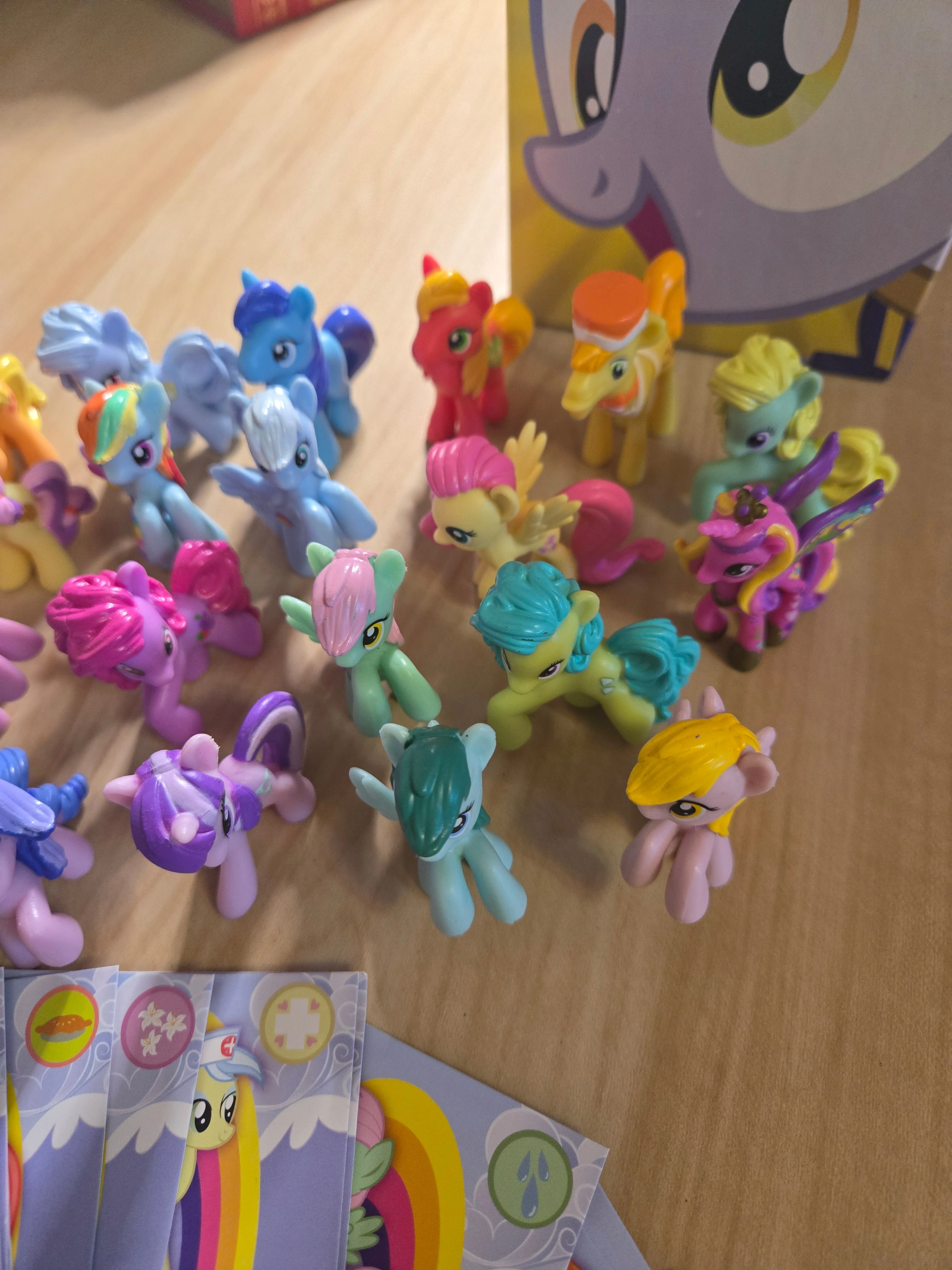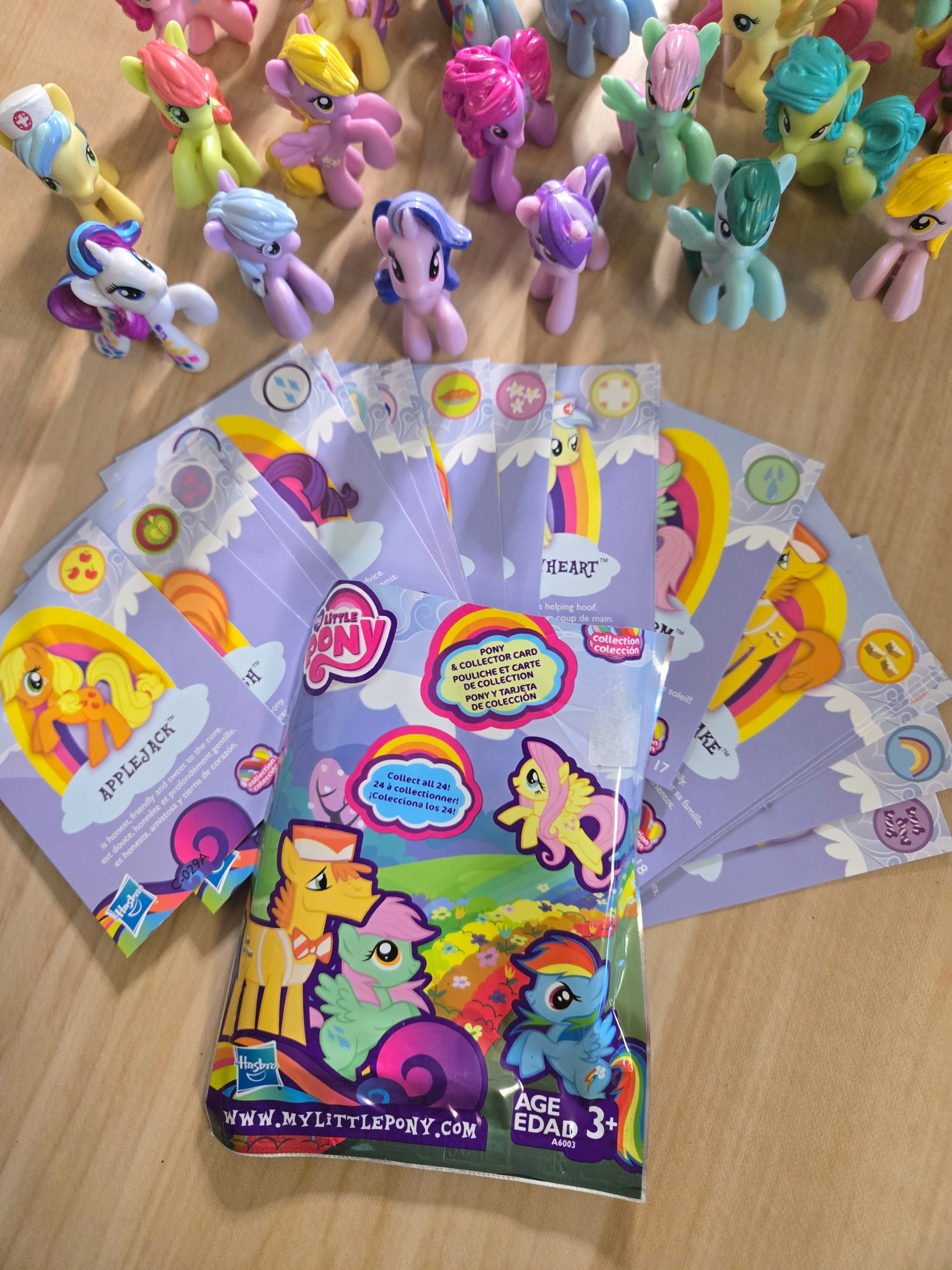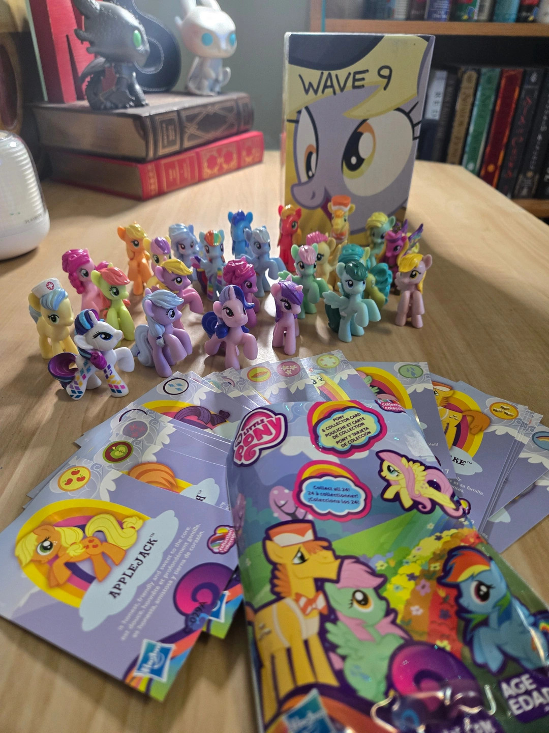 My Little Pony: Wave 9 Ponies with Cards (complete) The complete wave 9 MLP ponies with their collector cards (24 total). Each pony, depending on their position, are about 1-2 inches tall, so please consider this if you are planning on giving these to children. The cards correspond with the ponies are included, though due to the nature of blind bag packaging, the cards are in decent but not perfect condition. With this wave, I've included the MLP box with the wave written on it that I used to store them. Check out my profile for more MLP waves available for sale. I will not separate a single pony out of a wave due to the nature of the collection. I have no problem negotiating price if you want to buy more than one wave. Let me know if you would like more information or photos and I will get back to you as soon as I can.