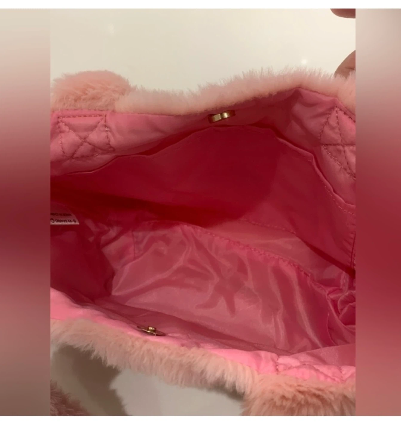 488PRICE IS FIRM! ππ©· ππ©· Super cute My Melody fluffy tote bag in a lovely shade of pink! It's perfect for carrying your essentials and adding a touch of kawaii to any outfit. π©·π The interior is lined with a matching pink fabric. The brand is My Melody Manufatto.