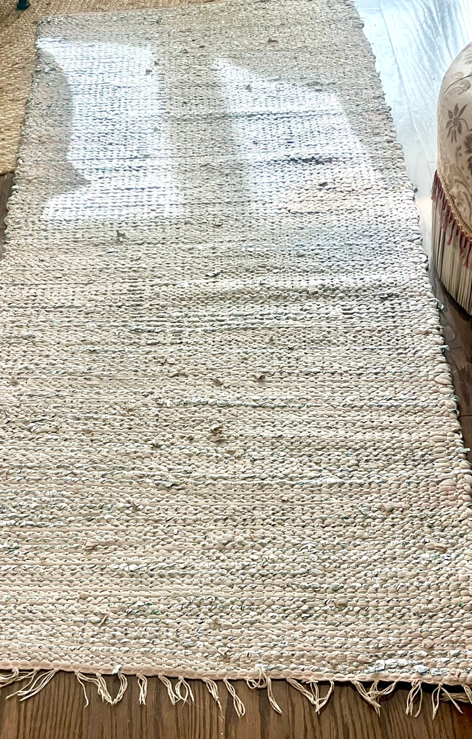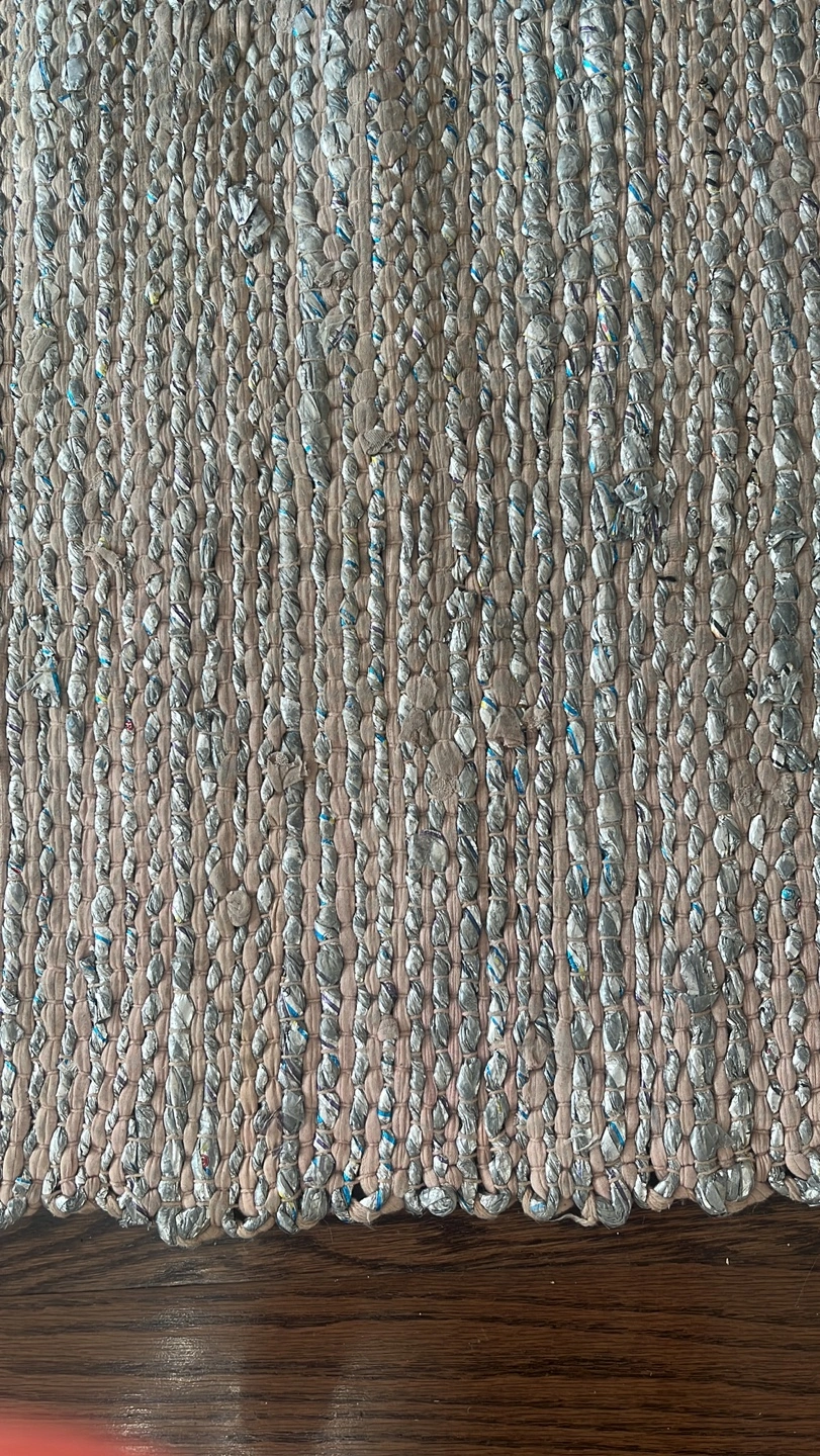 Matta NY brand pink and silver metallic Braided Area runner hallway boho rug from ABC Carpet. original price $200