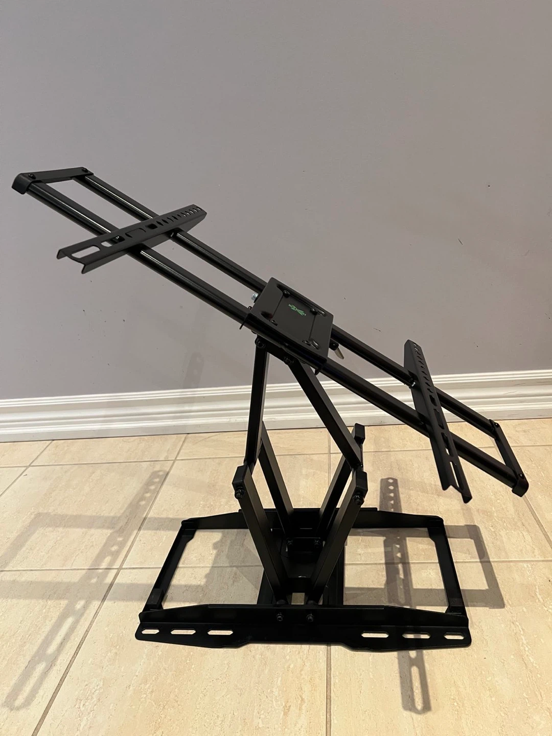 This black, heavy-duty TV wall mount offers swivel and tilt functionality. It's constructed from durable metal for secure mounting. The mount is designed to support a variety of TV sizes and weights.