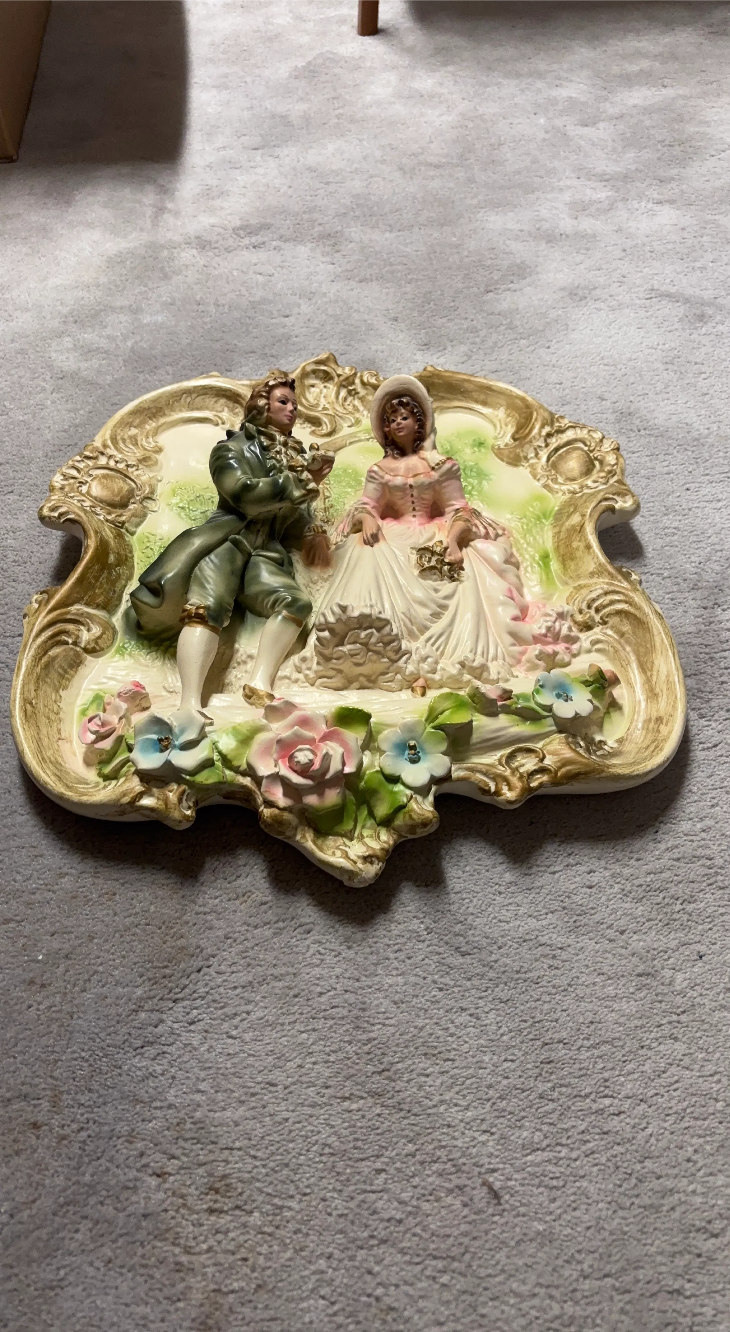 Vintage Ceramic Couple Figurine Wall Plaque