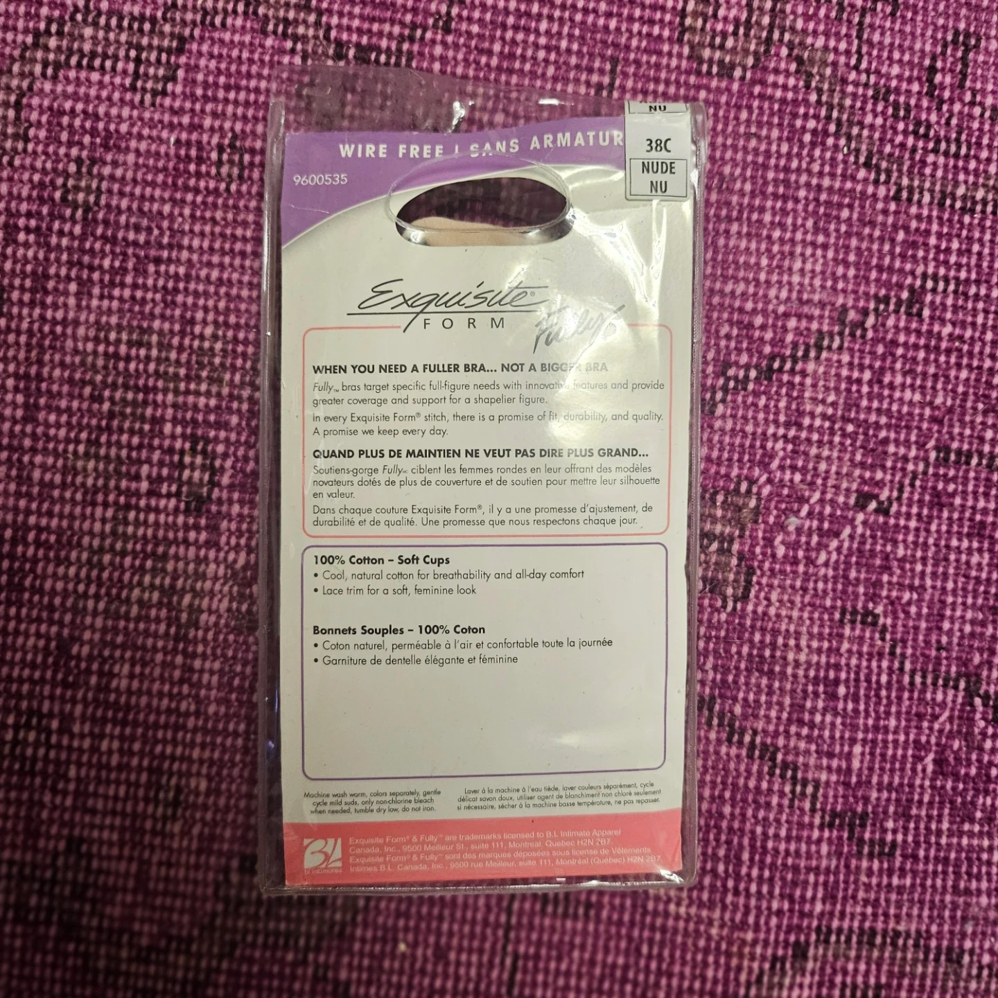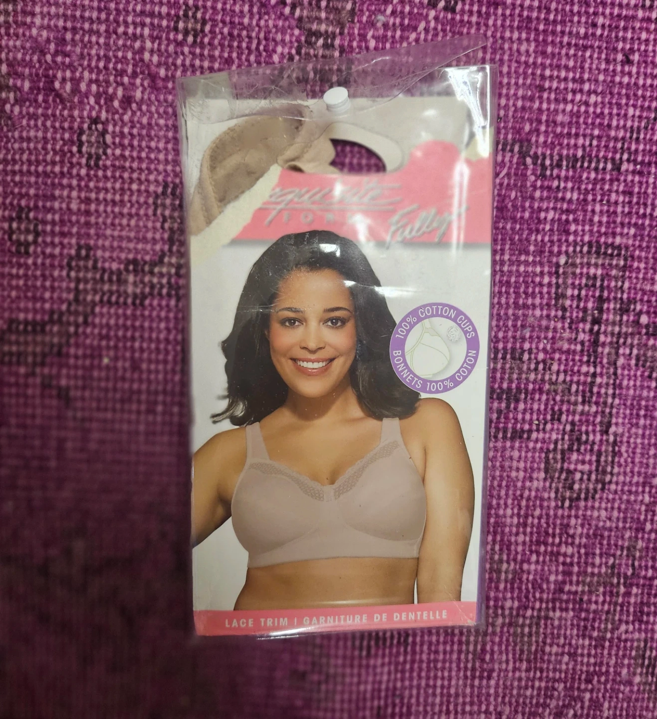 This Exquisite Form bra is designed for full figures with innovative features. It has 100% cotton soft cups and a lace trim for a feminine look. This bra offers great support and comfort.