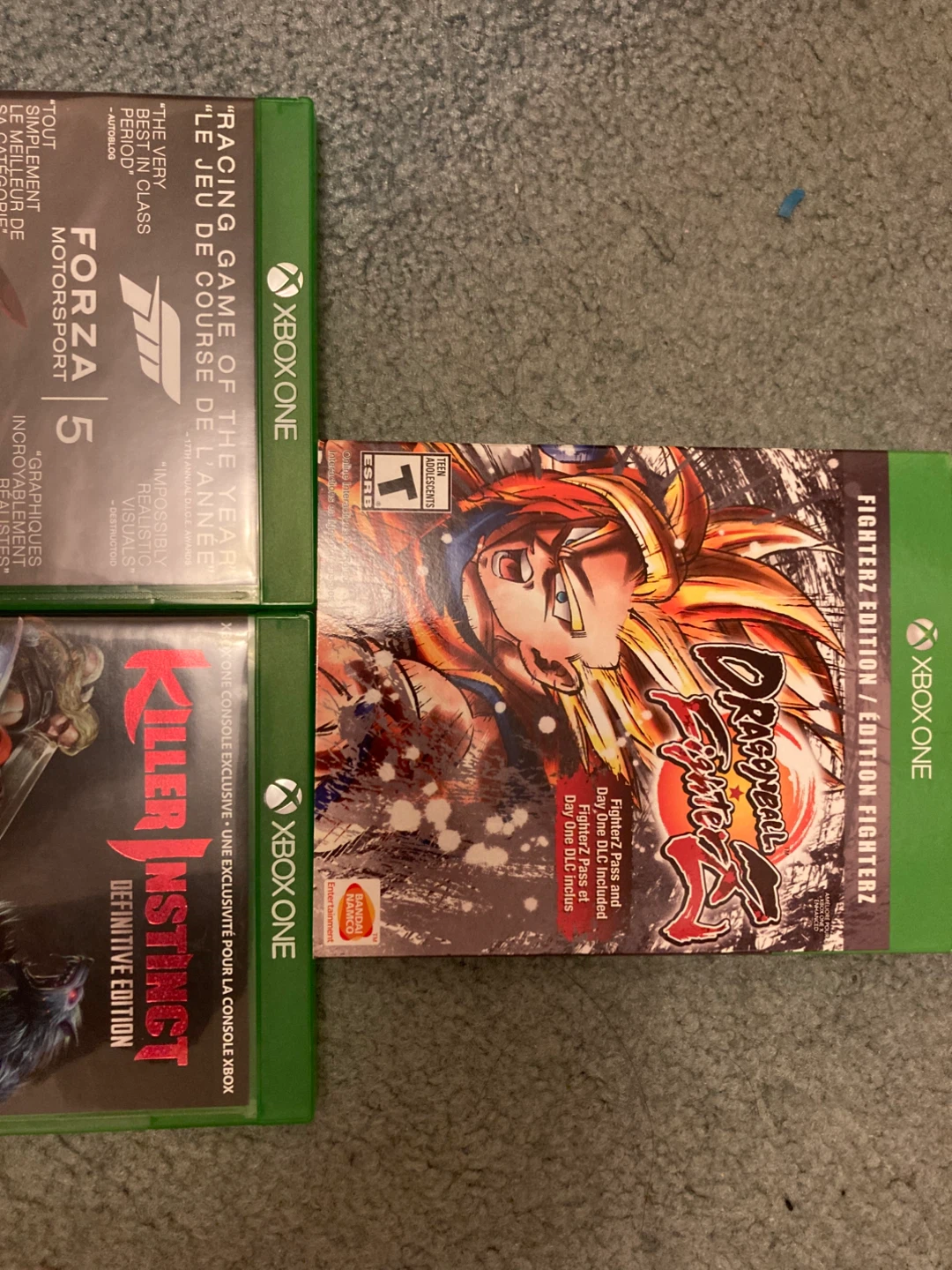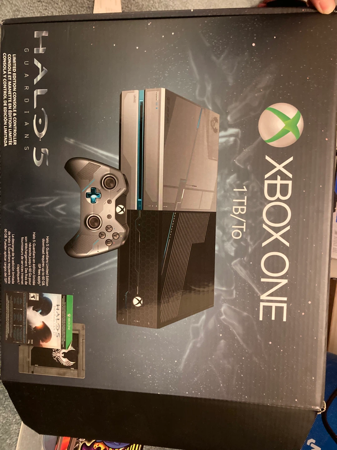 This is a limited edition Xbox One console bundle. It includes the console, a custom controller, and three games: Forza Motorsport 5, Killer Instinct Definitive Edition, and Dragon Ball FighterZ. The console has a 1TB storage capacity. It's ready for some epic gaming sessions!