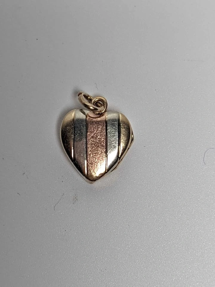 10K Gold Heart Locket Vintage 1980 1.80g Striped Tri-Color Desig