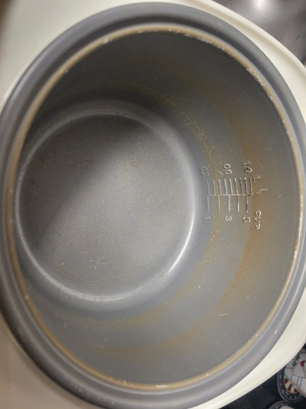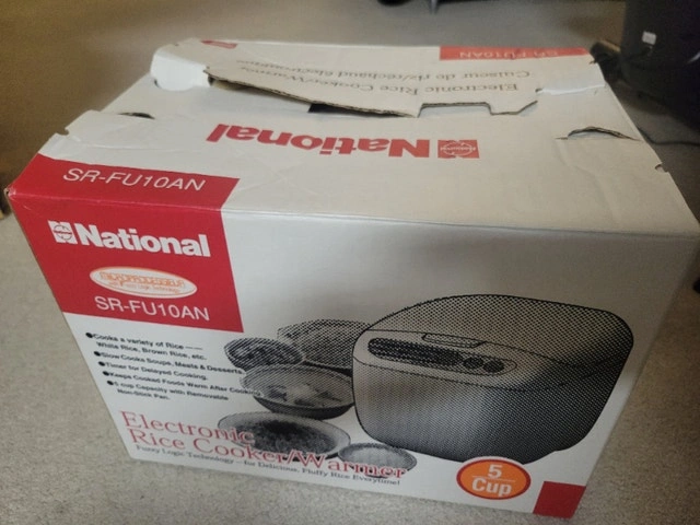 Looks and works like new with brand new measuring cup & rice scoop, scratches on inner bowl coating already reflecting on the low price. Price is firm, no offers, serious buyer and local pickup in Richmond Hill only, please read my full ad and only contact when you are ready to buy. Panasonic SR-DG102 Rice Cooker - 450 W - 1.06 quart - White Prepare up to 5 cups of uncooked rice Microcomputer and advanced Fuzzy Logic continually control and regulate heat for precise cooking and even, delicious results Smart keep warm function maintains optimum serving temperature for up to 12 hours, includes measuring cup and rice scoop Durable diamond fluorine-coated, non-stick inner pan transmits and retains heat in every grain of rice Easily select and set from 5 automatic menu options for a variety of rice, Quick / Slow Cook option, Porridge, Cake, easy to use and read soft-touch buttons