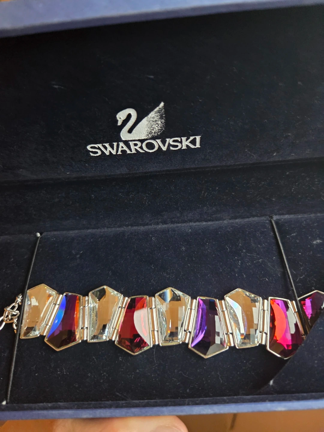 Sparkling Swarovski crystal bracelet with colourful faceted stones. It comes with the original box, making it a lovely gift. This statement piece adds a touch of glamour to any outfit!