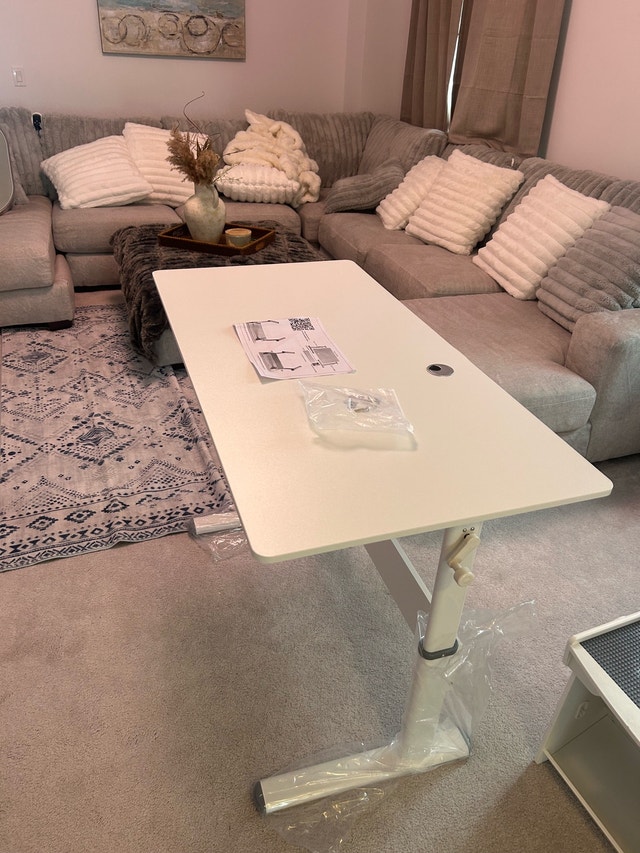This brand new adjustable table is perfect for anyone needing versatility in their workspace. The smooth height adjustment mechanism allows for easy transitions between sitting and standing positions, promoting better posture and comfort. Its sturdy construction ensures durability, making it a reliable addition to any home or office. Key features: Adjustable Height, Sturdy Build, Modern Design. Maximum height is 34 inches. Length: 48 inches. Width: 24 inches. If the ad is up, it's still available!