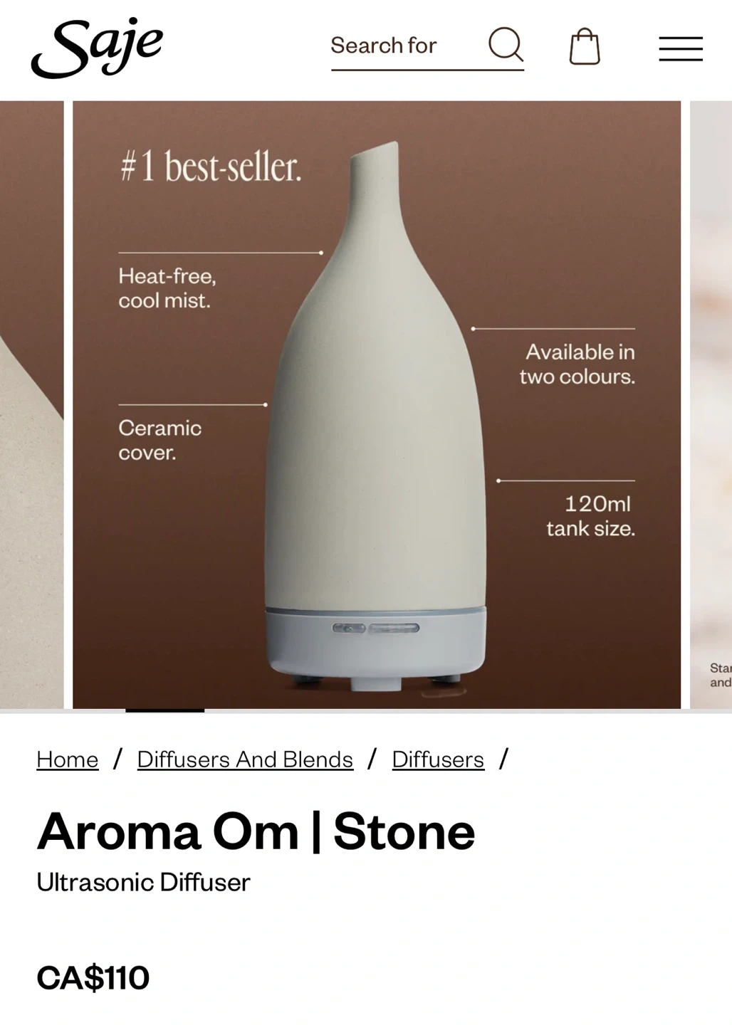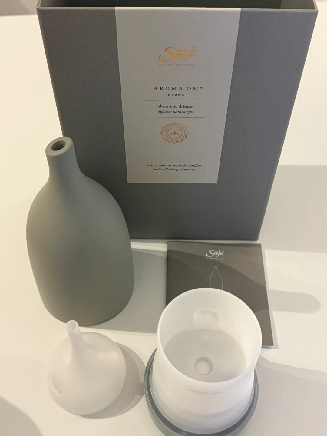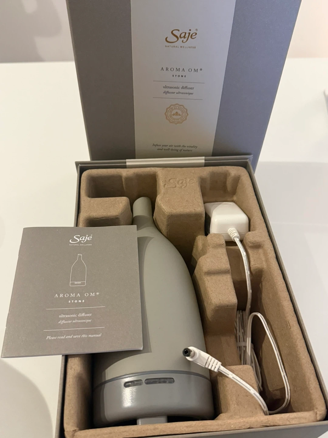 Selling a Saje Aroma Om Stone ultrasonic diffuser in great condition! It comes with the box and all components, including the power cord and instructions. This diffuser infuses your air with the vitality and well-being of nature. The diffuser has a ceramic cover and a 120ml tank size. Originally bought for $110.