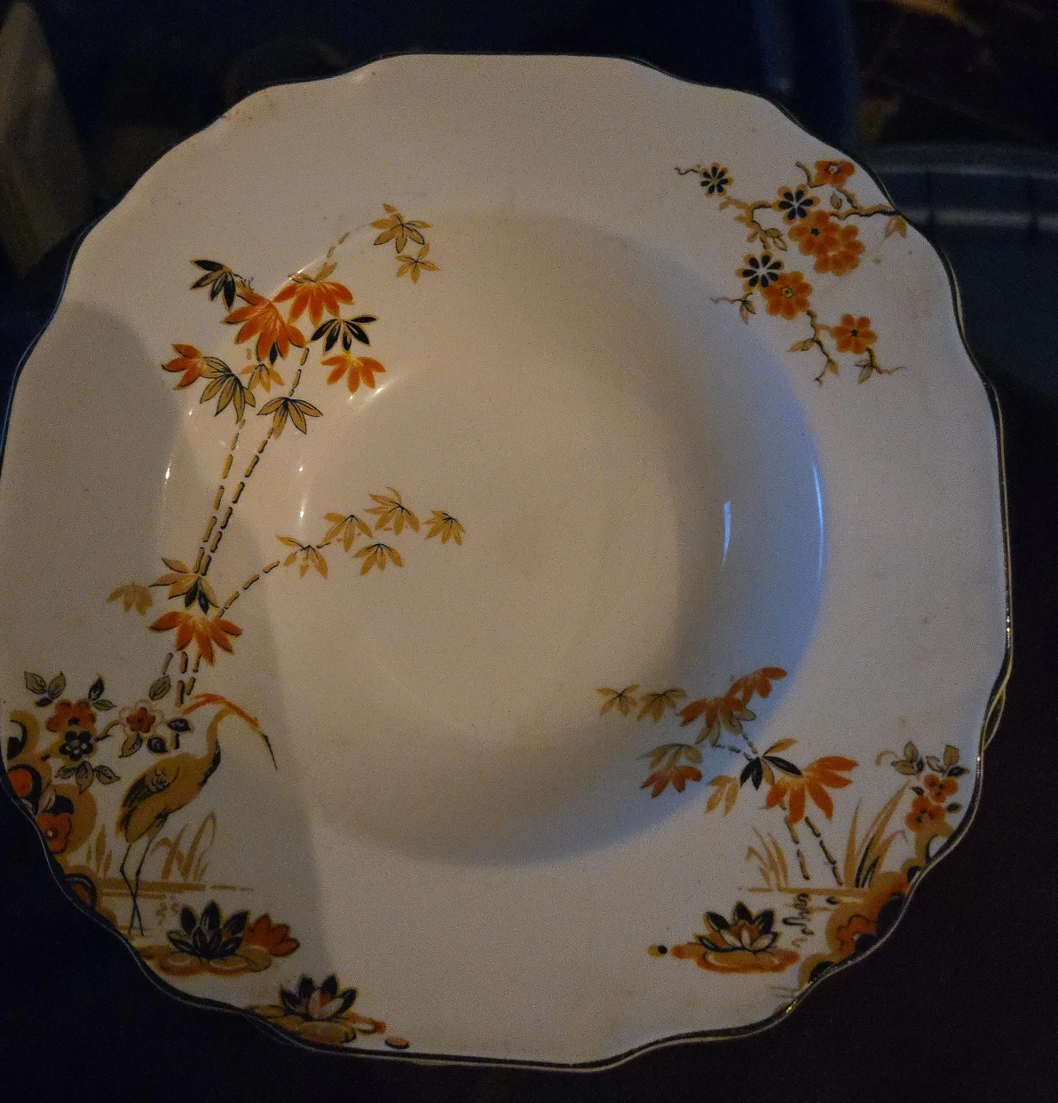 10Selling a Myott Staffordshire England bowl. It features a beautiful floral and bird design with gold trim. The bowl is in good condition and would make a lovely addition to any collection. 8 bowls altogether asking 75 obo