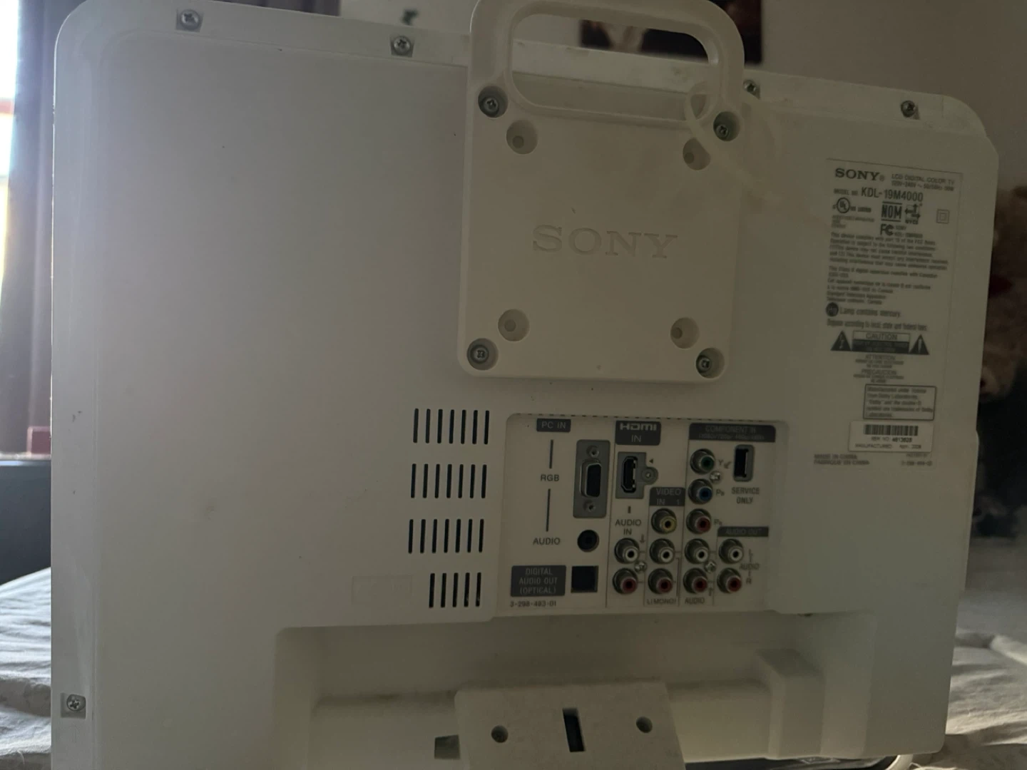 Selling a Sony BRAVIA KDL-19M4000 19-inch LCD TV. It has a white back and a black front. It has ports for PC in, HDMI, and component in.
