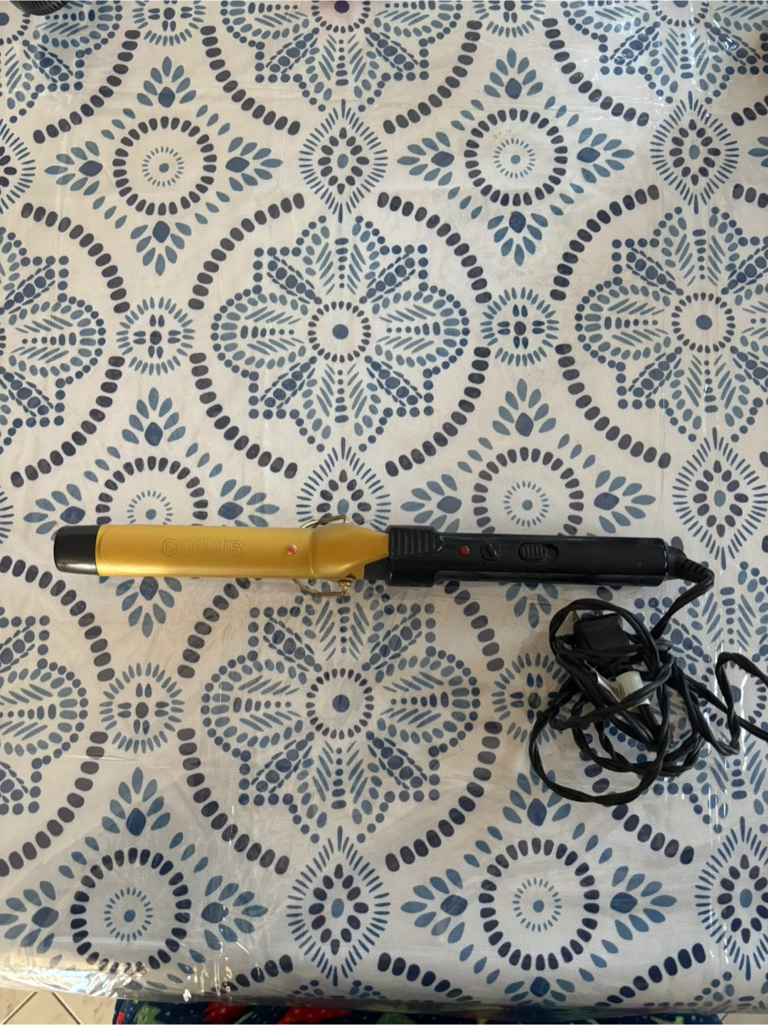 Selling a used Conair curling iron in gold. It's in good working condition and ready for a new home! Perfect for creating curls and waves.