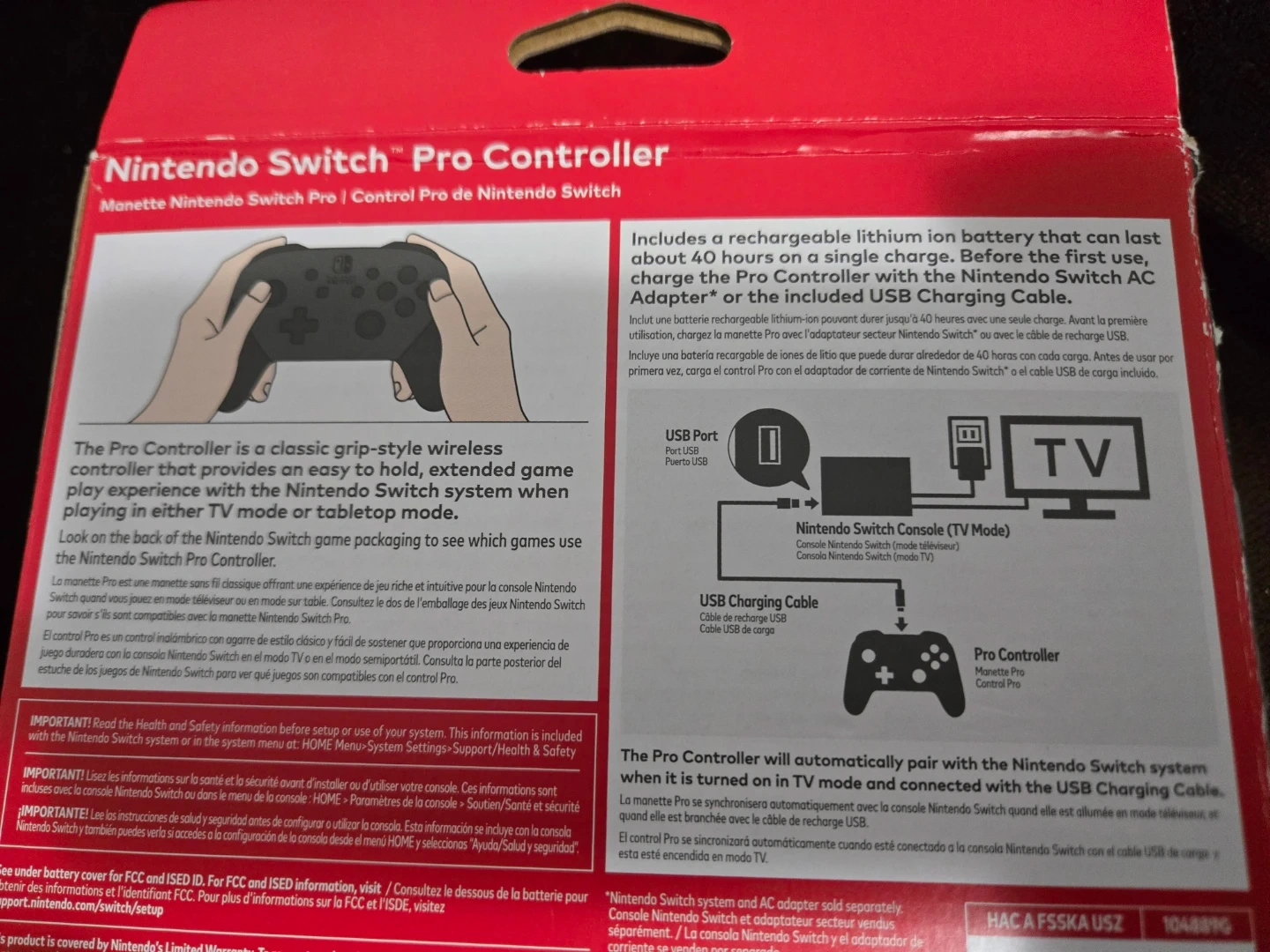 This Nintendo Switch Pro Controller provides a classic, comfortable grip for extended play. It includes a rechargeable lithium-ion battery that lasts up to 40 hours on a single charge. It connects wirelessly to your Nintendo Switch console or Nintendo Switch OLED Model system.