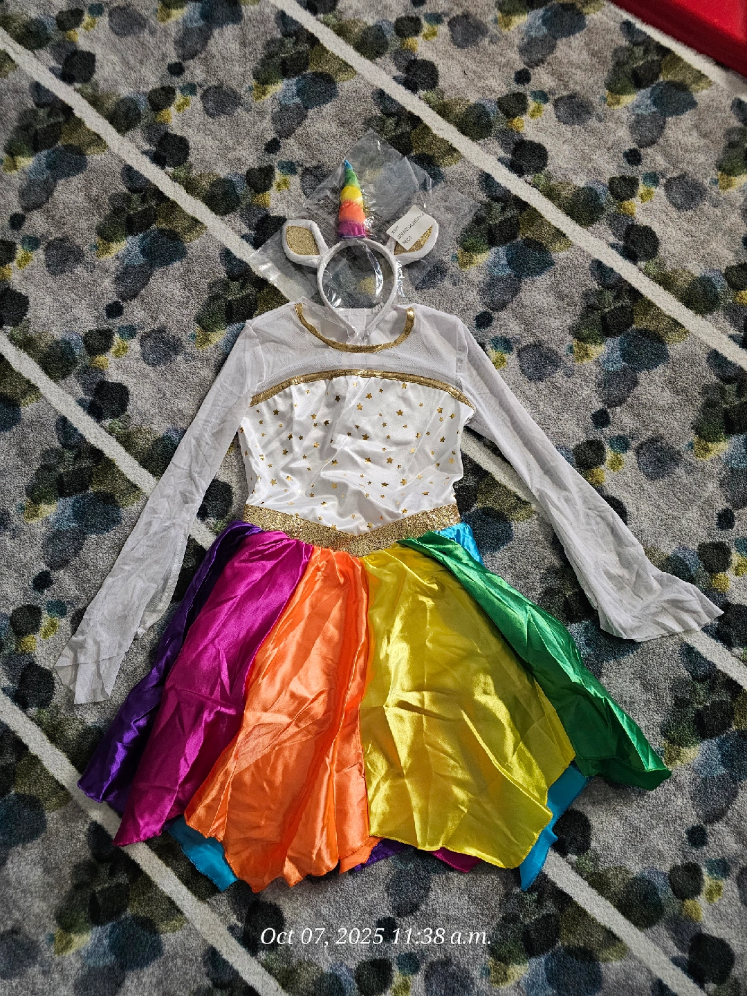 10Get ready for dress-up with this adorable Mystical Unicorn costume! It's a size medium, perfect for kids aged 8-10. The costume includes the dress and a cute unicorn headband to complete the look. It's in great condition and ready for a new home!