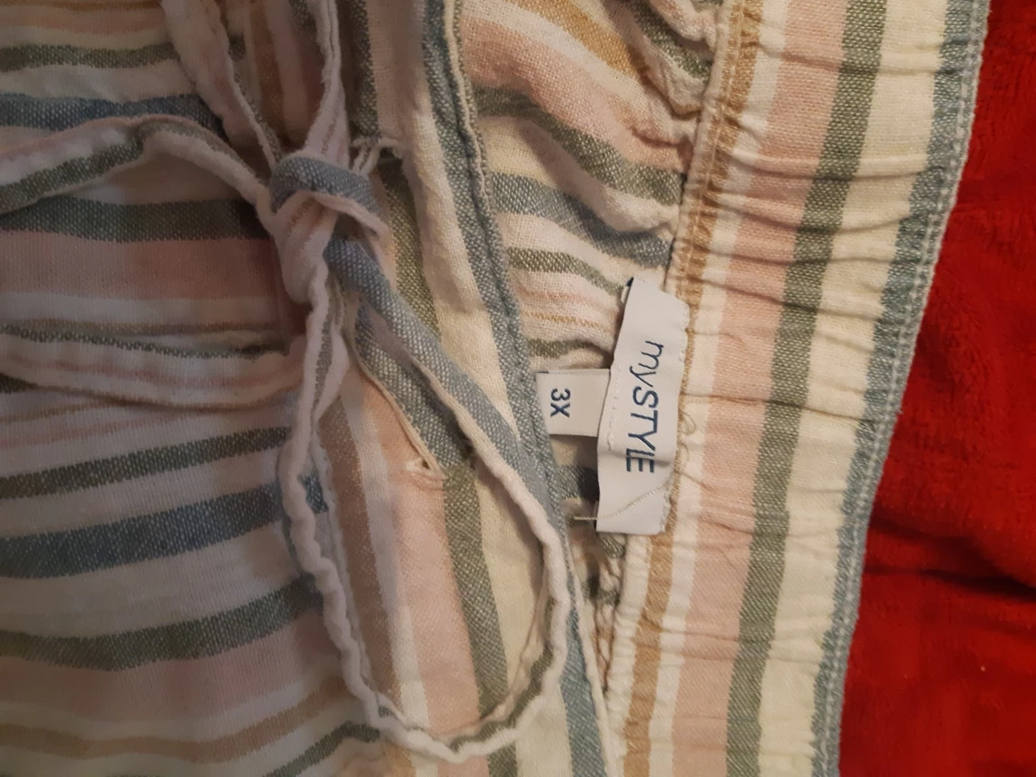 Selling a pair of MyStyle pants in size 3X! They feature a cute striped pattern and a comfortable drawstring waist. Perfect for lounging around the house or running errands.