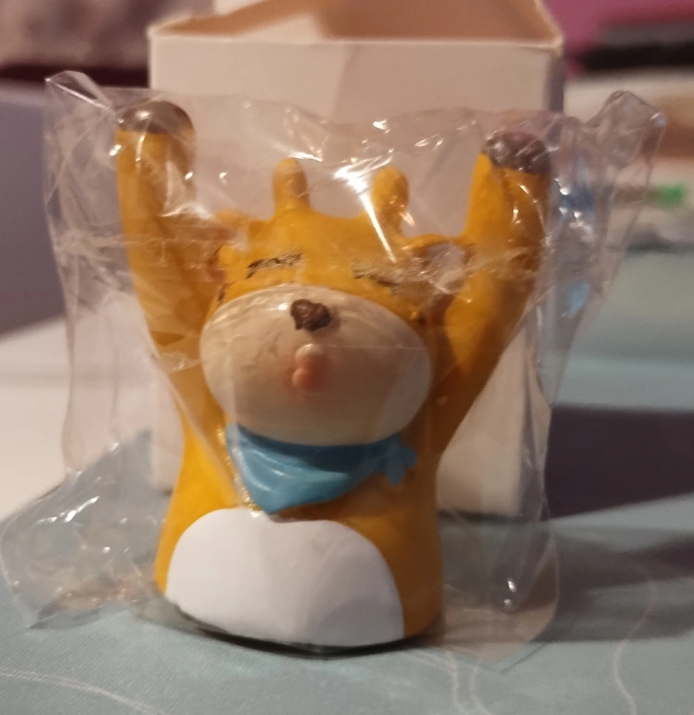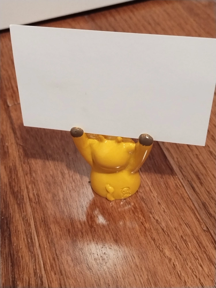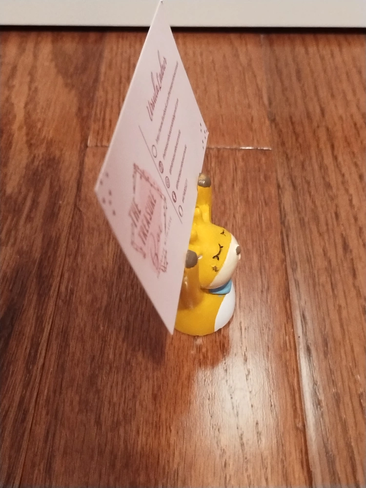 Yellow giraffe 🦒 with blue bandana business card holder for both desk decor and holding a business card, notes or anything else the size of a business card. For use in home, and office work environments. New and still in its original packaging.