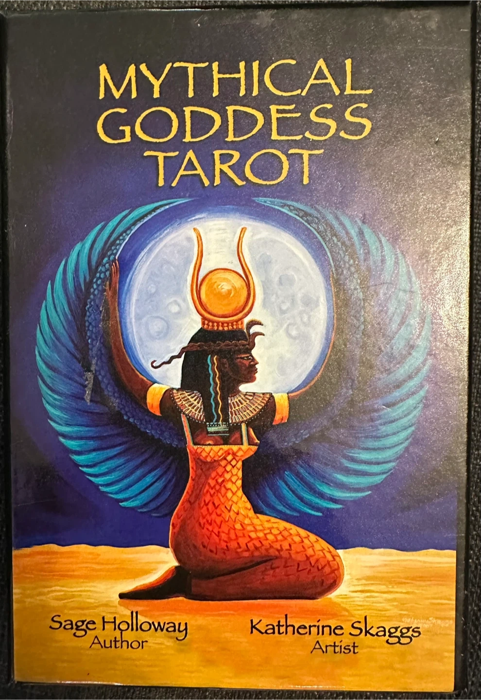 Selling a Mythical Goddess Tarot deck by Sage Holloway and artist Katherine Skaggs! This is a 78-card deck with a full-colour, 128-page guidebook to assist you in realizing your Sacred Feminine essence. The beautiful images are portals into dimensions of power and support.
