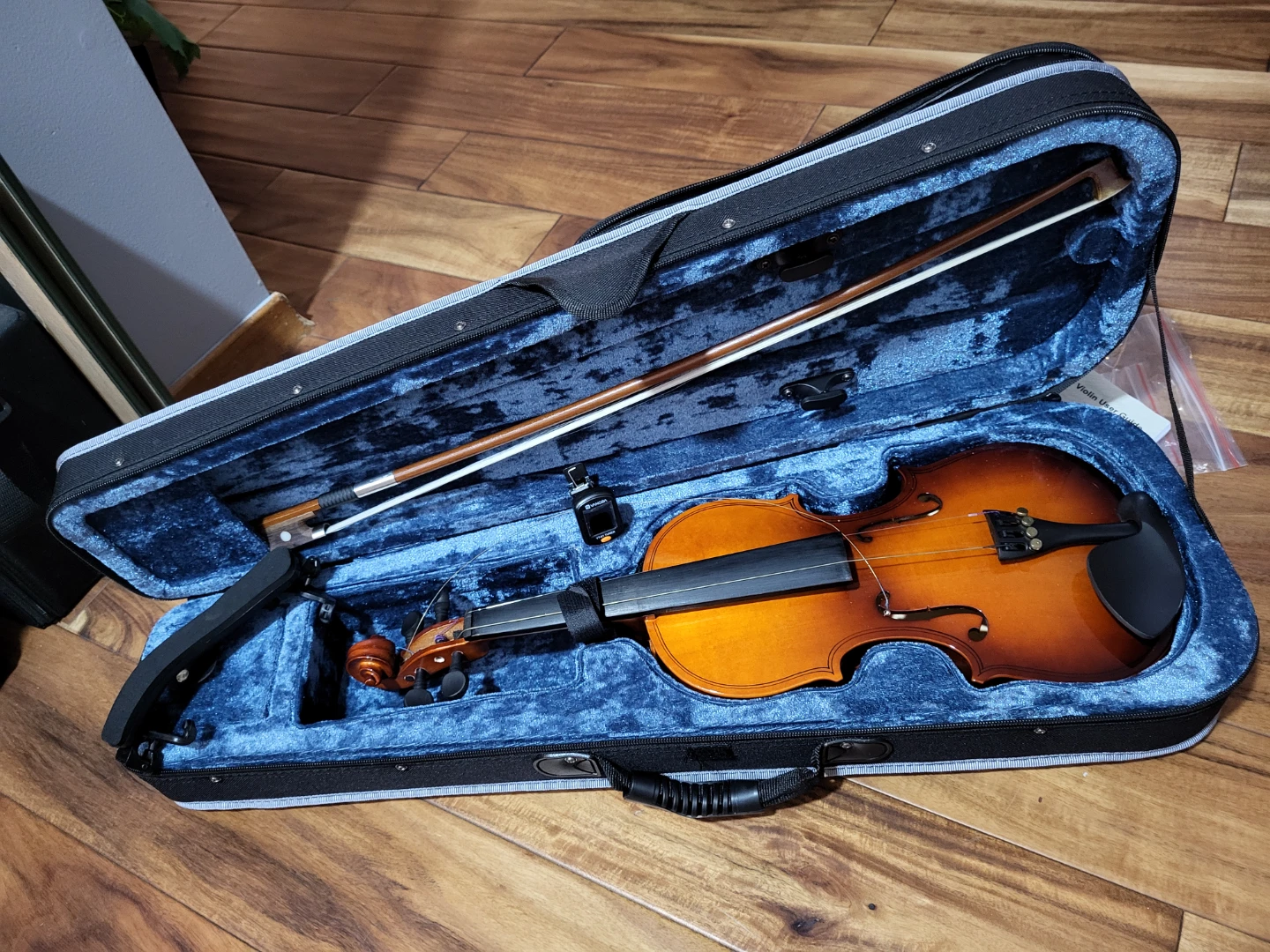 Selling a Vangoa violin, complete with its case and accessories! It comes with a bow, a VT-01 tuner, and a user guide. Perfect for someone looking to start playing or upgrade their current instrument