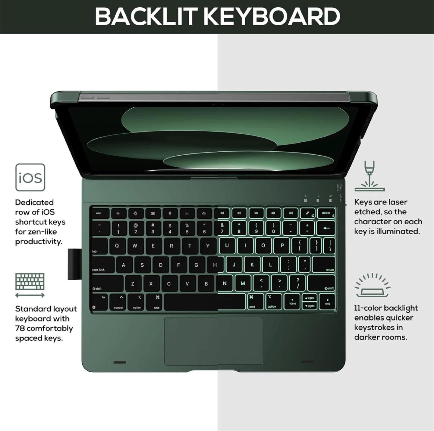 • 11-color backlight for easier typing in dim environments