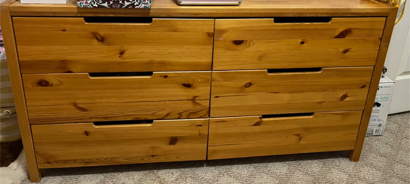 1 / 11 / 1Buy & SellMoving sale - dresser with 6 drawersMoving sale - dresser with 6 drawers$35Dresser with 6 drawers. It's in good condition and perfect for adding storage to any room. The dresser has a natural wood finish.ConditionGoodDimensions138x48x72WHERE TO MEETCheck LocationView MapSELLERverifiedBeatrizEast Vancouver18214 reviews2 chats·0 favorites·93 viewsSEND CHAT TO SELLERHi Beatriz! I’m interested in your listing.Hi Beatriz! I’m interested in your listing.Get the Karrot app to chatSign In to chat