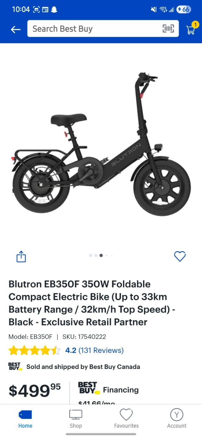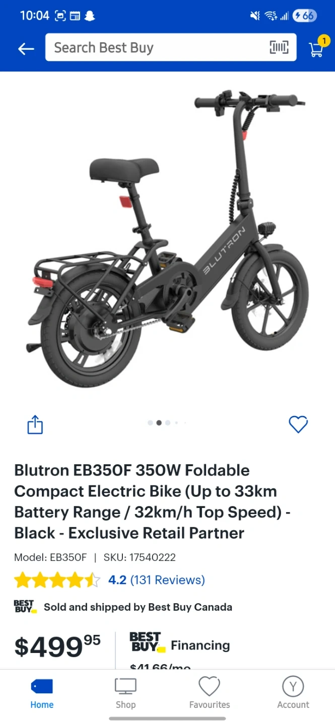 This is the Blutron EB350F 350W foldable compact electric bike. π²β‘ It offers a battery range up to 33km and a top speed of 32km/h. ππ This bike comes in black. β«οΈπ€ Bike is new in condition. β¨π *** Price is included for 1 helmet πͺ and 1 bike chain lock π. If you want delivery its gonna be $20. ππΈ