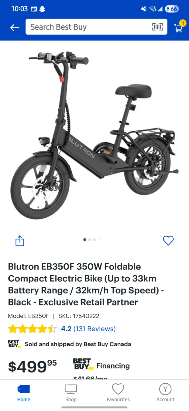 This is the Blutron EB350F 350W foldable compact electric bike. π²β‘ It offers a battery range up to 33km and a top speed of 32km/h. ππ This bike comes in black. β«οΈπ€ Bike is new in condition. β¨π *** Price is included for 1 helmet πͺ and 1 bike chain lock π. If you want delivery its gonna be $20. ππΈ
