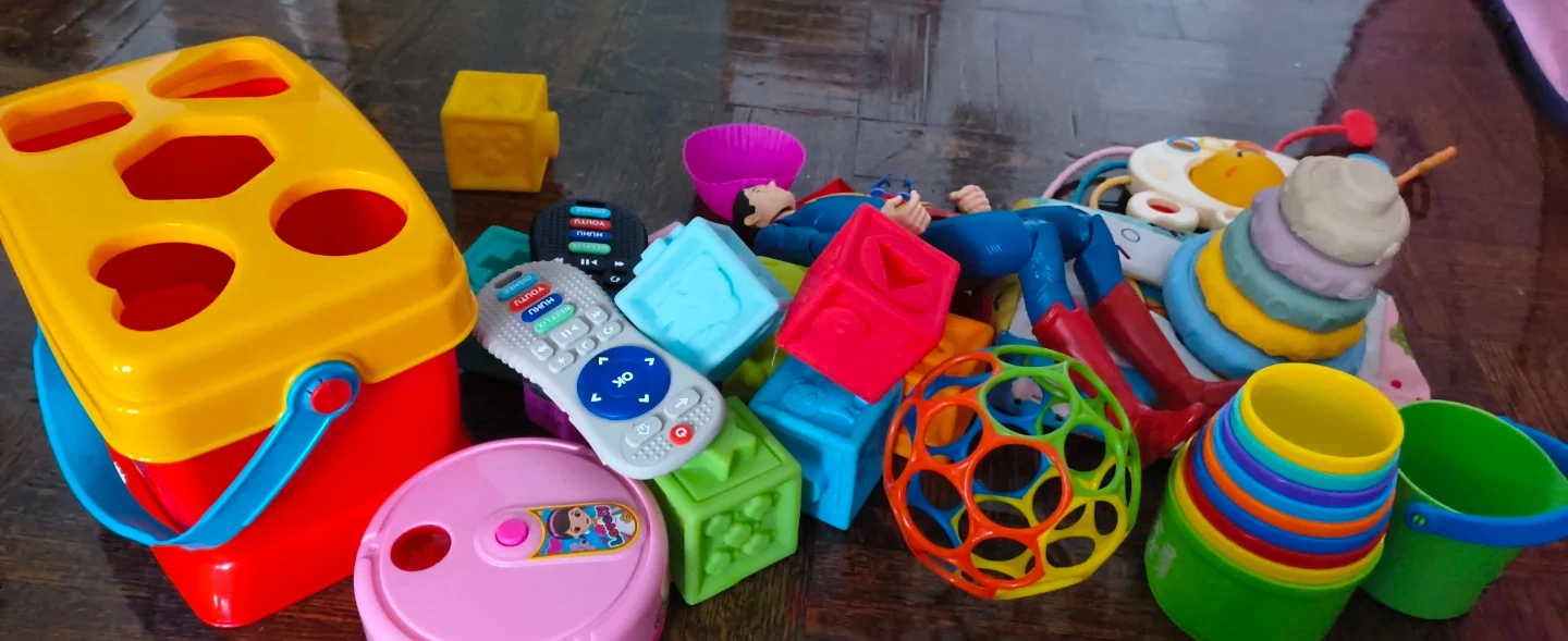 A mixed lot of baby and kids toys, including shape sorters, blocks, stacking cups, and more! Perfect for keeping your little one entertained and learning.