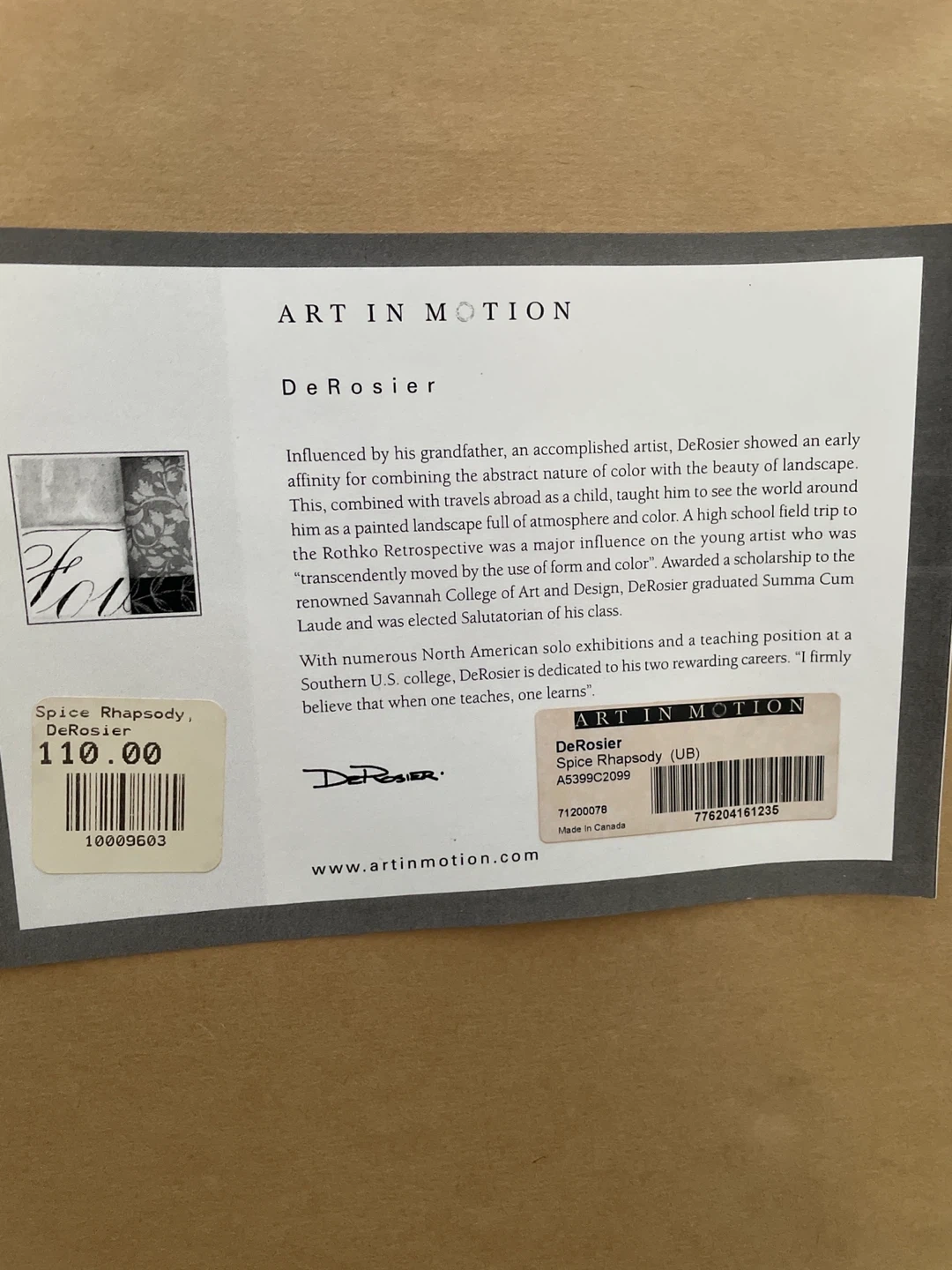 This 'Spice Rhapsody' canvas art piece is by artist DeRosier. It's a lovely abstract print with warm earth tones. Ready to hang, it'll add a touch of elegance to any room!