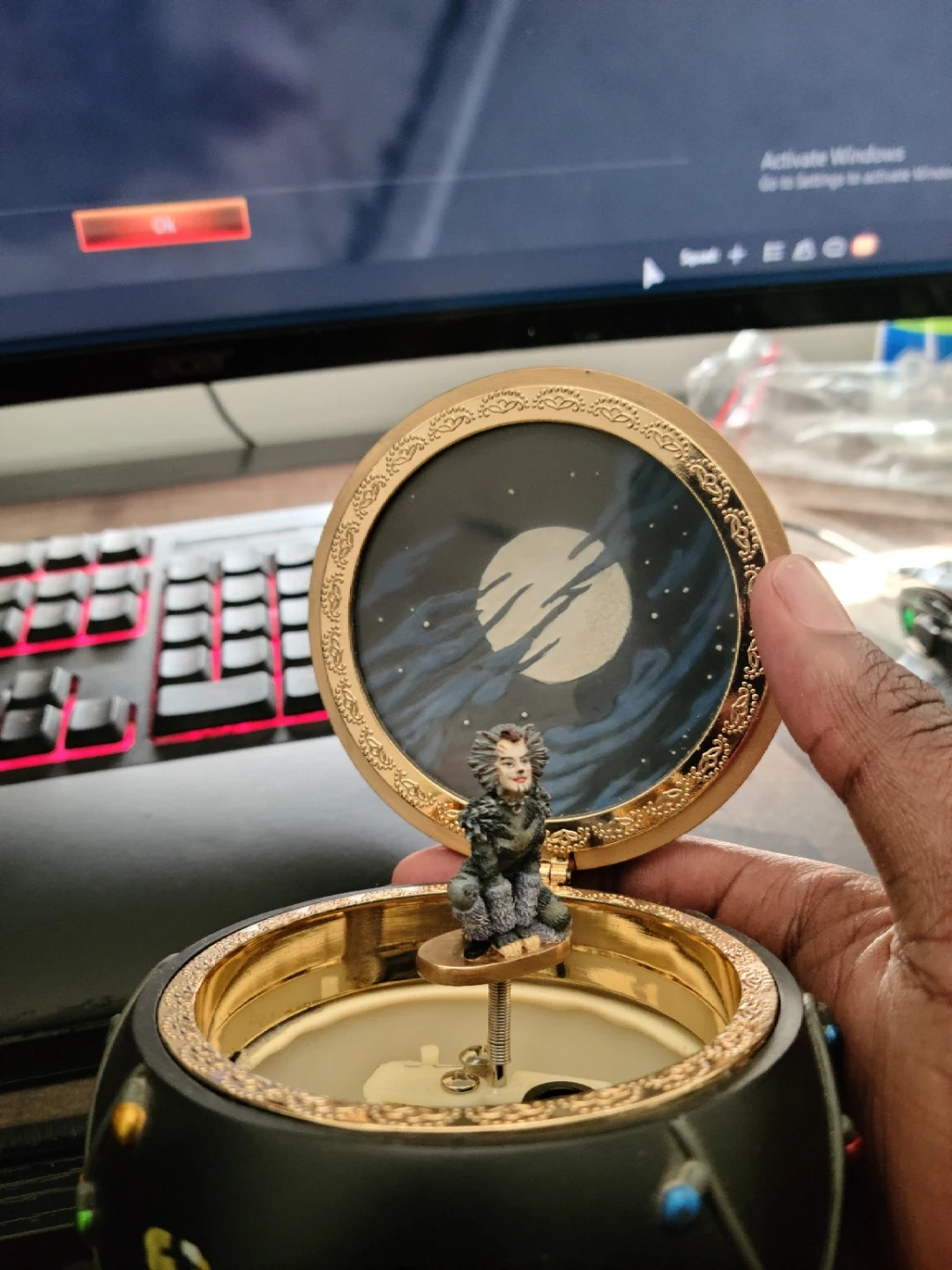 Cats musical music box. It's I pretty decent condition and still plays music. There was a cover that sits inside that seems to be gone/torn out