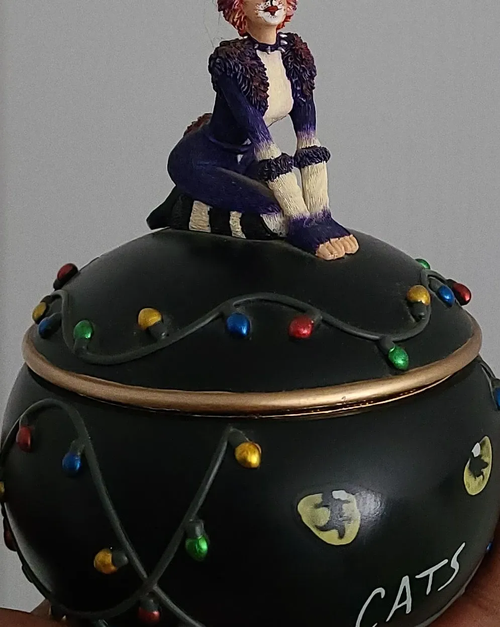 Cats musical music box. It's I pretty decent condition and still plays music. There was a cover that sits inside that seems to be gone/torn out