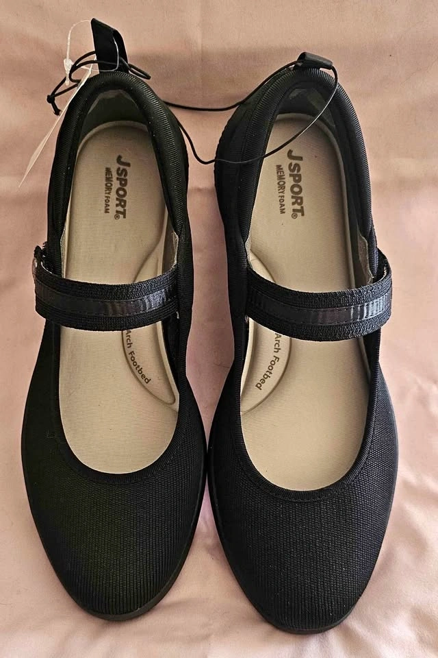 BNIB J SPORT Black Mary Jane Flats Shoes 10M Memory Foam