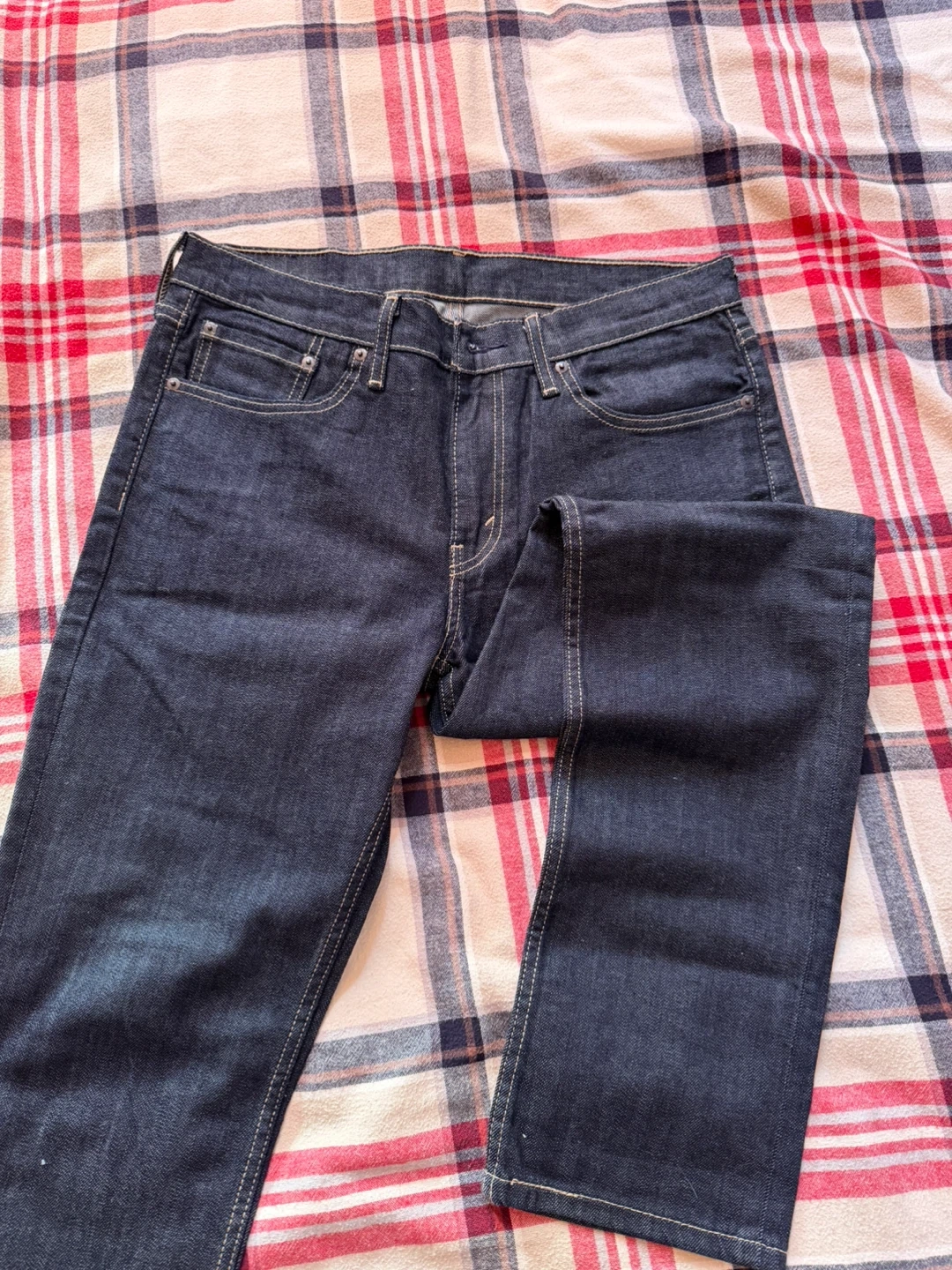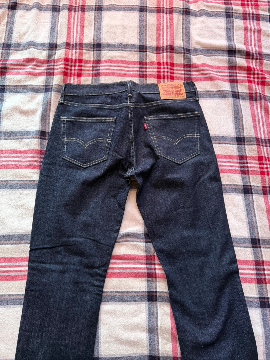Classic dark wash Levi's denim jeans. Five-pocket styling. Made from durable denim fabric. A reliable staple for any wardrobe!