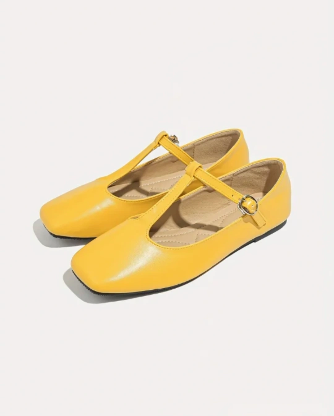 Brand new, never worn, cute yellow T-strap ballet flats. Perfect for adding a pop of colour to your outfit! They're comfy and stylish, great for everyday wear or dressing up a bit.